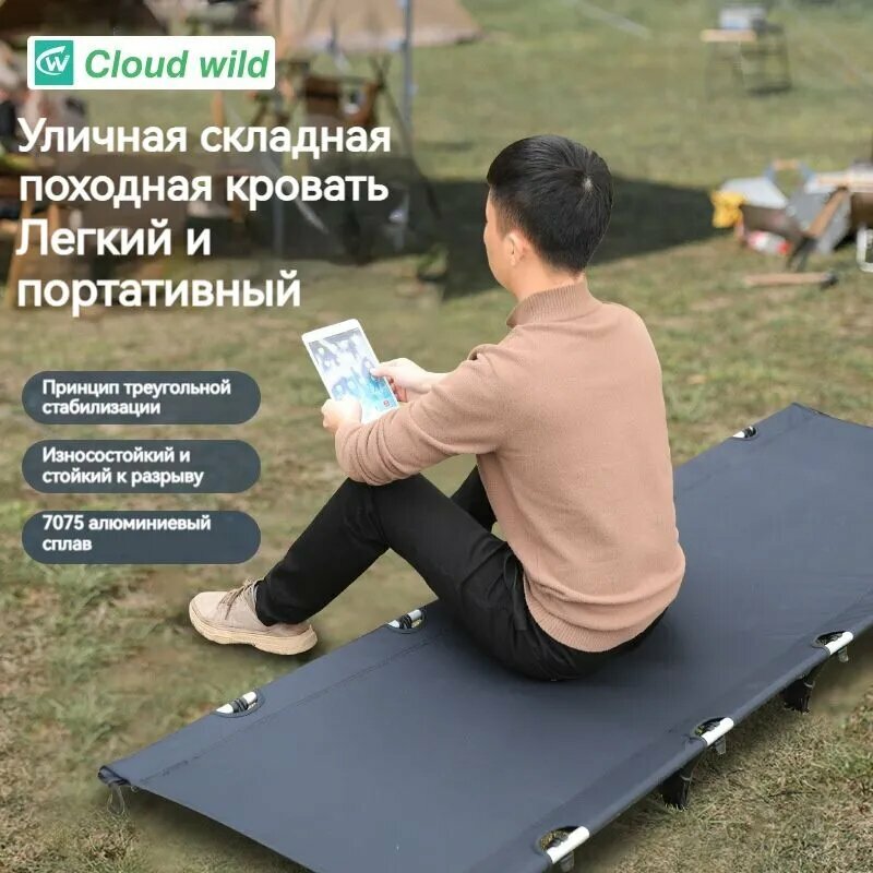 Алюминиевая рама делает эту кровать оптимальным выбором для туристов — вес конструкции 2.2 кг позволяет переносить ее в рюкзаке без дополнительной нагрузки. В сложенном состоянии кровать занимает объём 45×15×15 см — меньше, чем стандартный спальный мешок. Габариты спальной поверхности 190×65 см обеспечивают комфорт для пользователей ростом до 185 см.