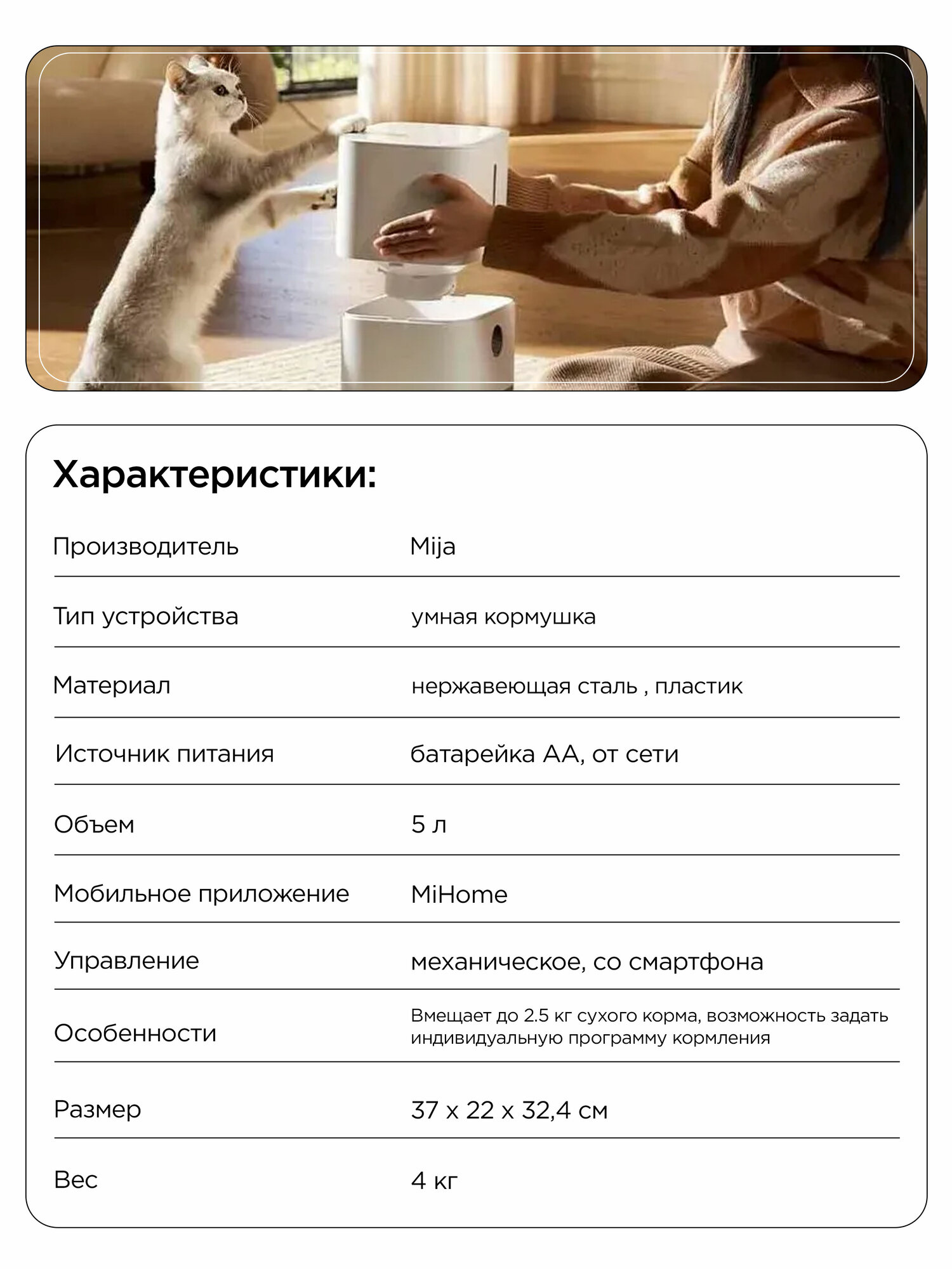 Кормушка Mijia MJWSQ02 KT-168 создана для владельцев кошек и некрупных собак до 25 кг. Инженеры Xiaomi предусмотрели ключевые особенности: