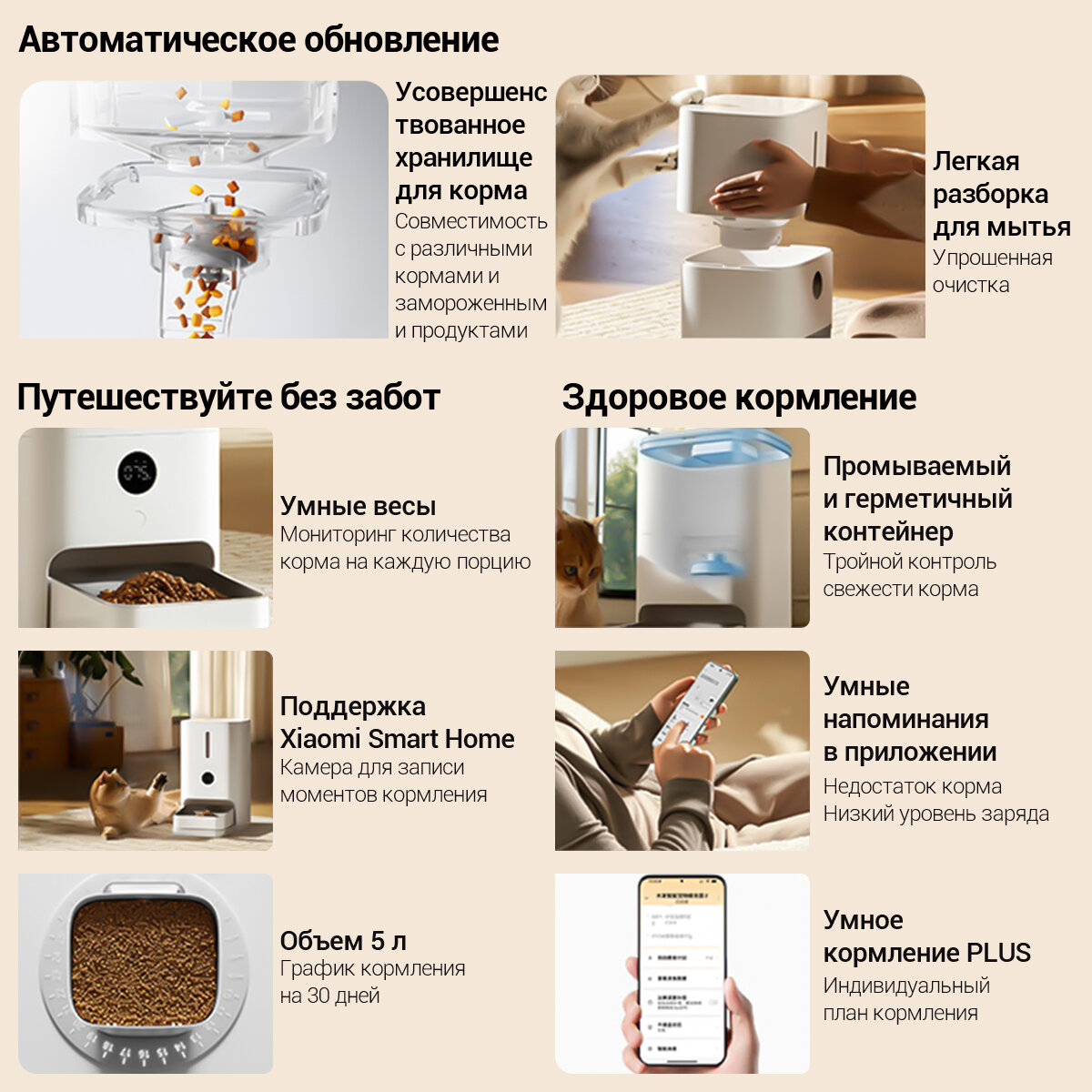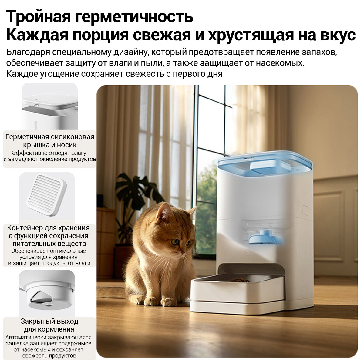 Проблема: 73% автовладельцев пропускают кормления из-за работы. Решение Xiaomi: 36 запрограммированных кормлений в неделю через Mi Home App с синхронизацией в Google Home/Alexa. При сбое питания резервная батарея сохраняет настройки 12 часов.