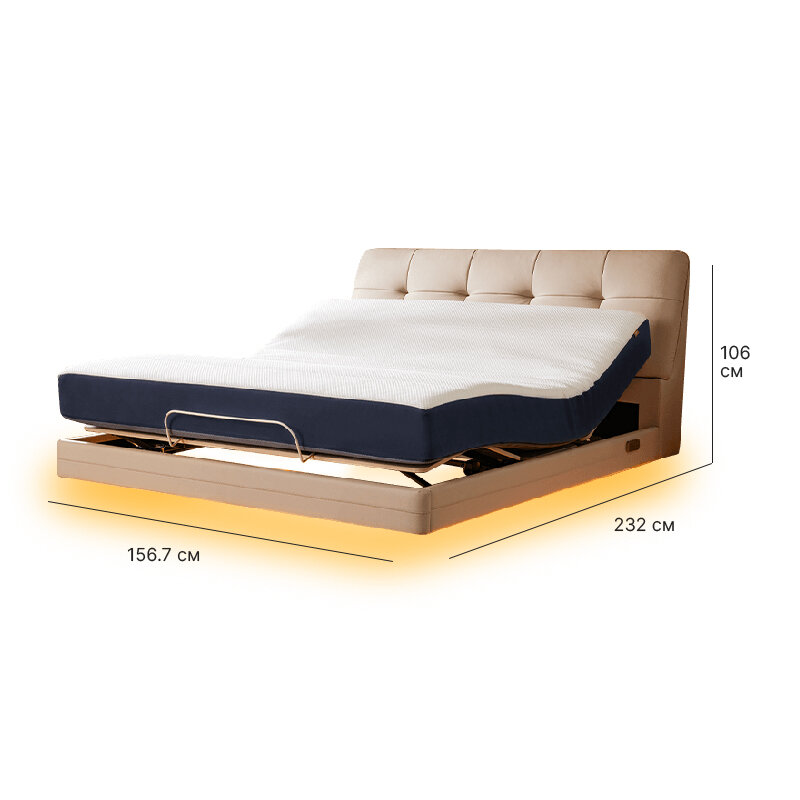 Моторизированное основание Xiaomi Milan DT3 Ultra позволяет менять угол изголовья до 60° и положение подножья до 45°. Система электроприводов обеспечивает: