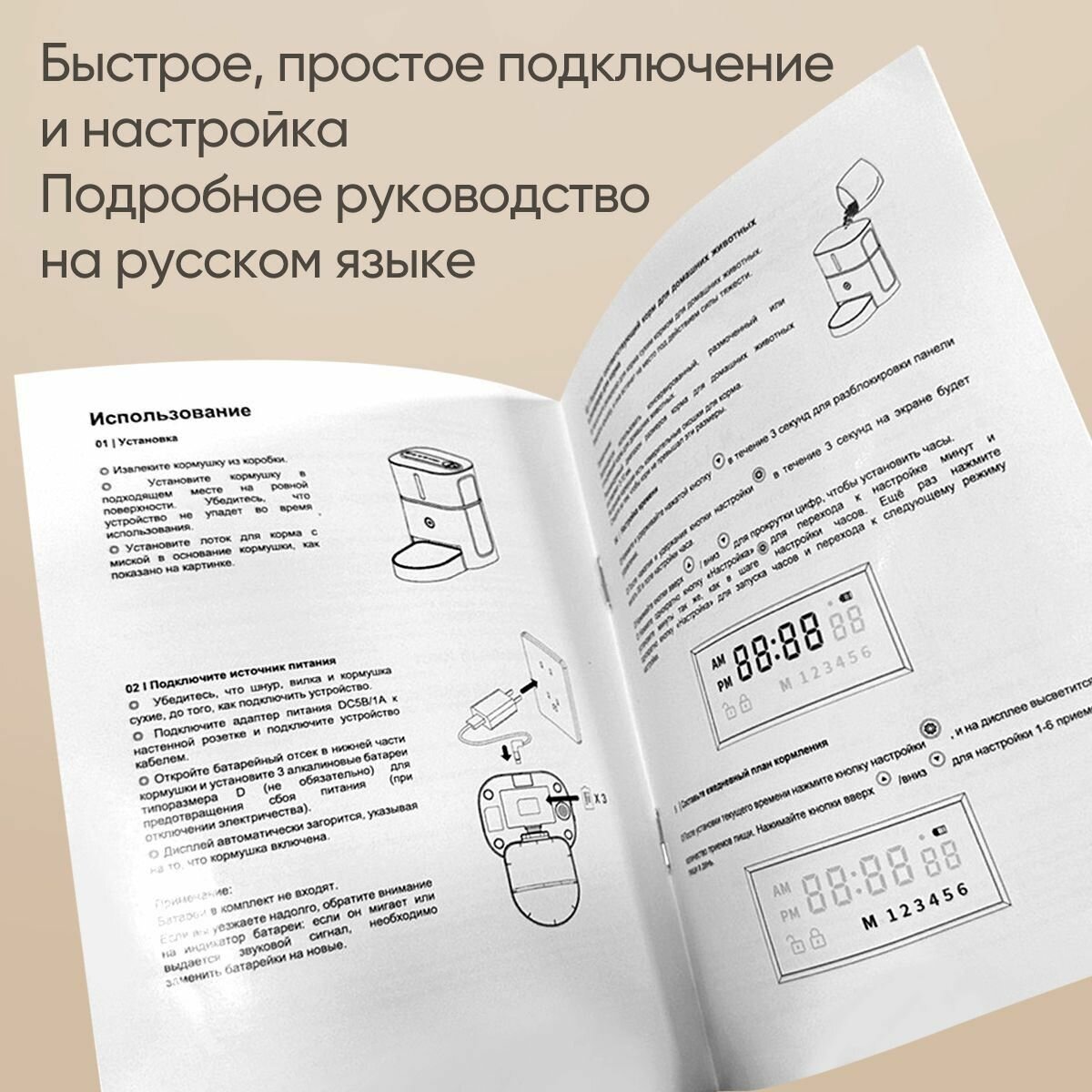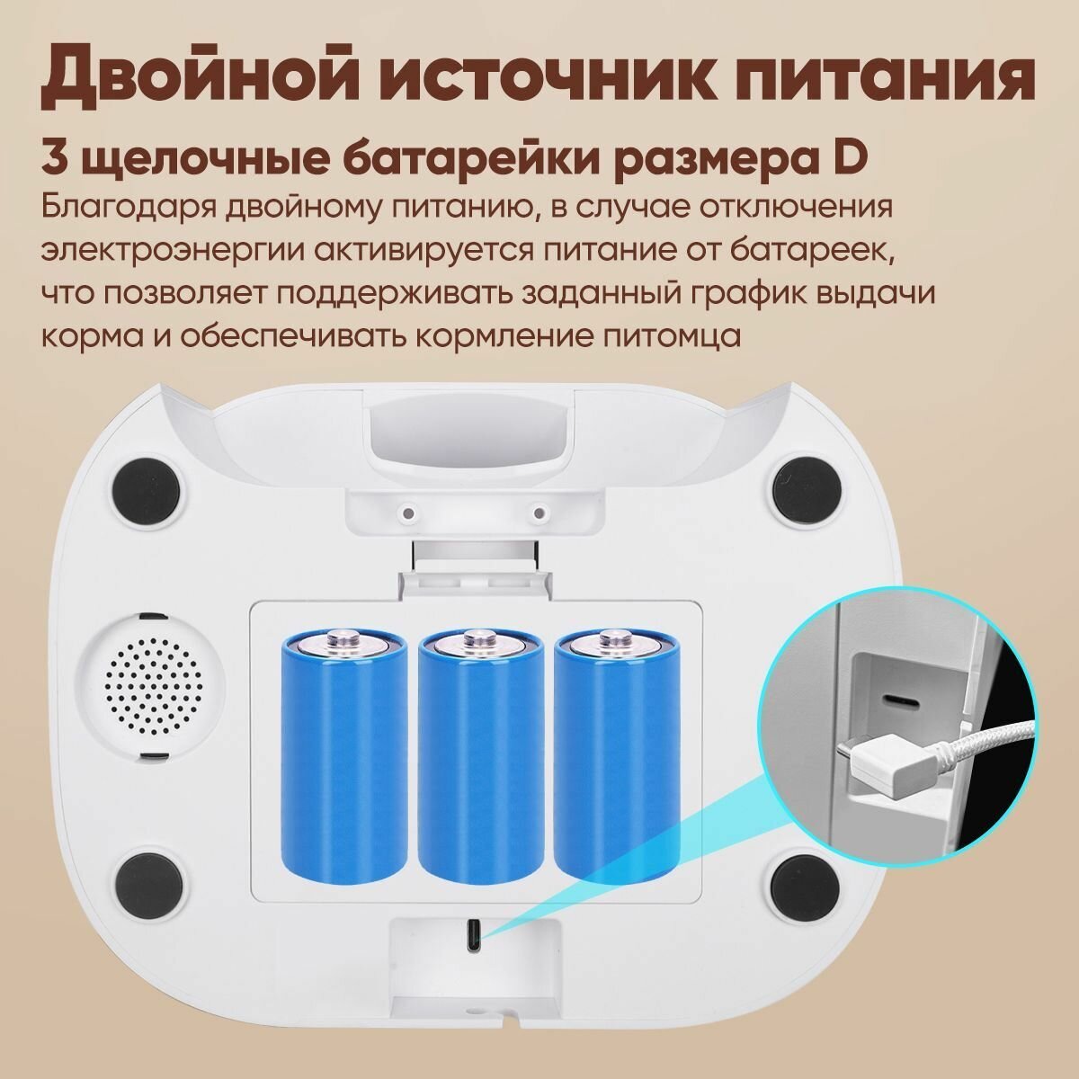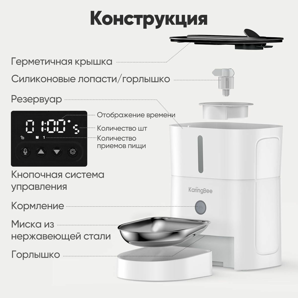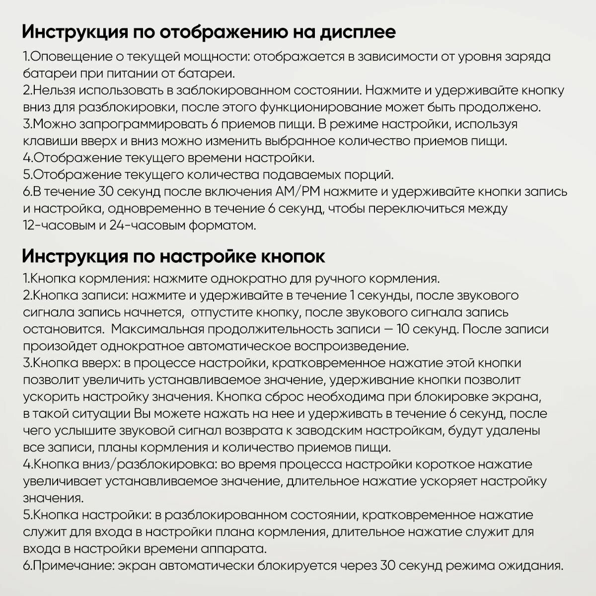 - Таймер кормления с погрешностью ±15 секунд/сутки и 6 предустановленными режимами
