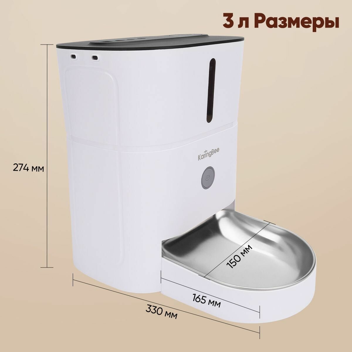 - Объем 3 литра - рассчитан на 15-20 порций для кошек средних размеров или 7-10 порций для собак до 25 кг