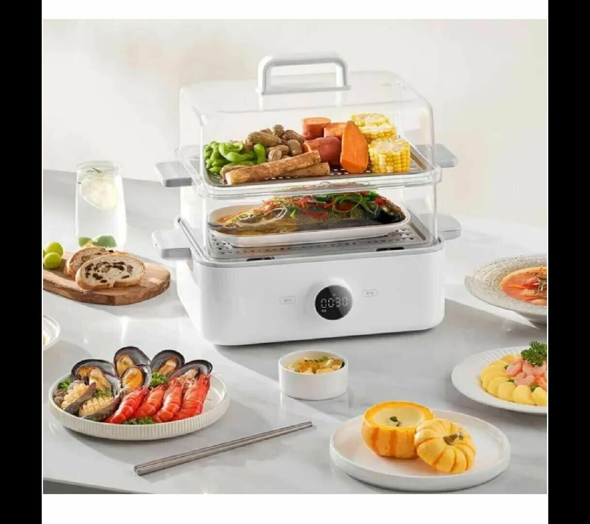Многоярусная система включает три съемных контейнера BPA-free высотой 8 см каждый. Площадь сетчатых поддонов 380 см² позволяет одновременно готовить рис в нижней корзине, овощи в средней и рыбу в верхней. Отсек для кабеля в подставке уменьшает занимаемое место на кухне на 30% по сравнению с аналогами.
