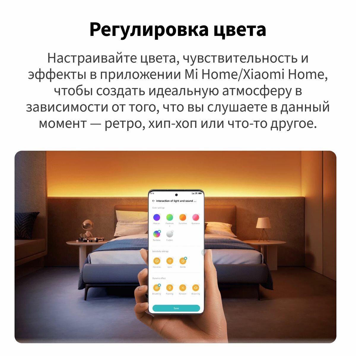 - Цветовой диапазон: 16 млн оттенков с температурой 1800К-6500К