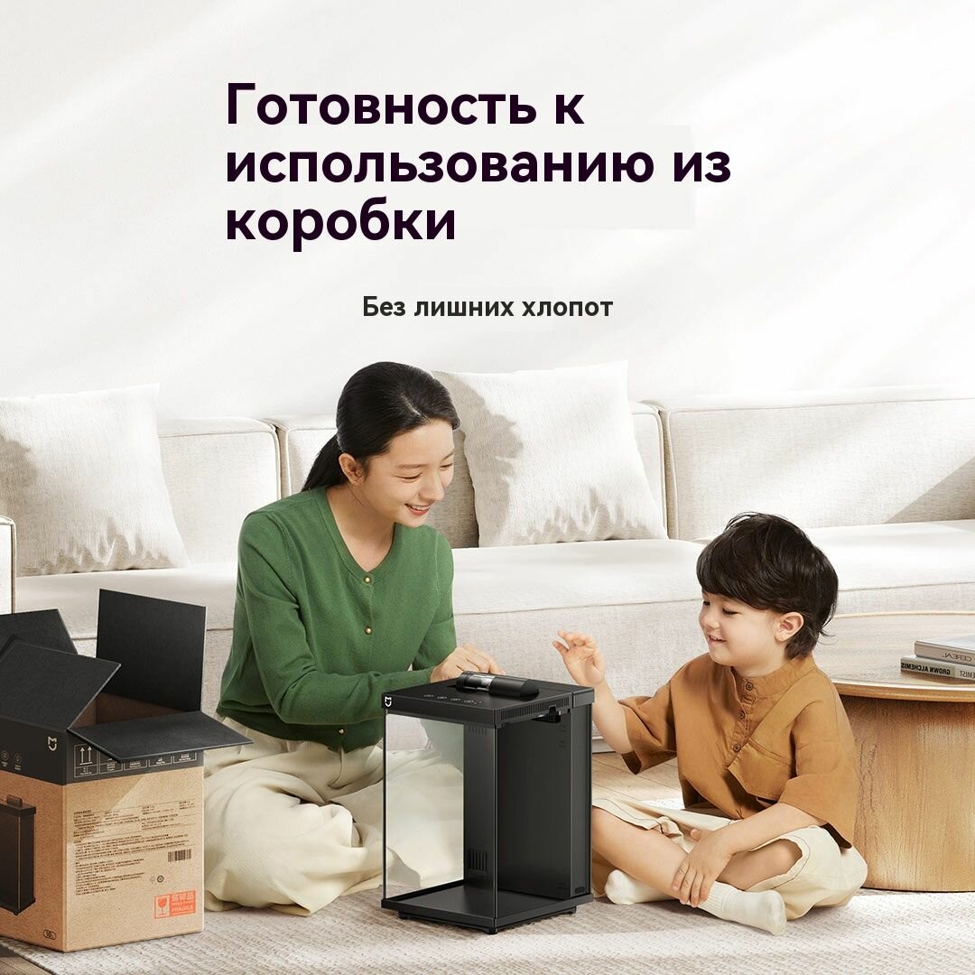 Трехуровневый фильтр с угольным слоем и керамическими кольцами работает через интегрированный насос производительностью 380 л/ч. В приложении Mi Home настраиваются режимы: