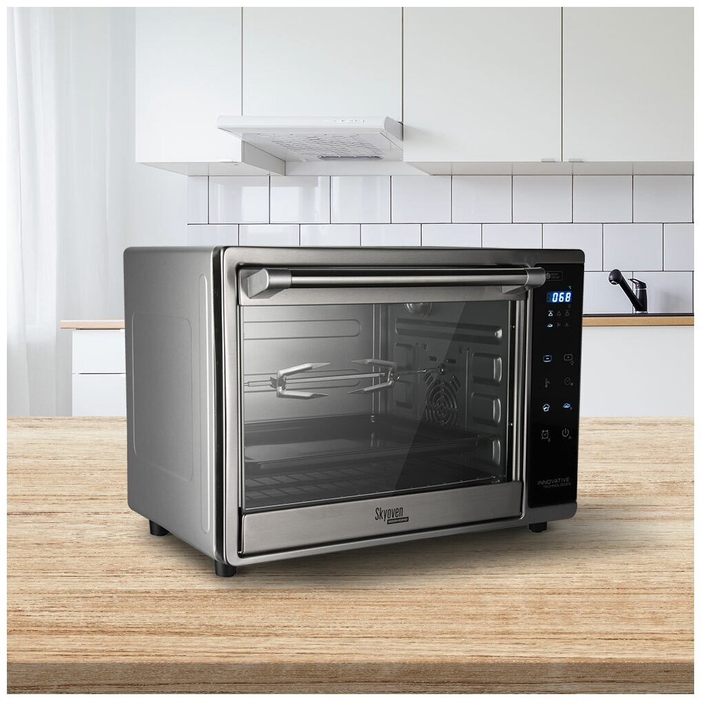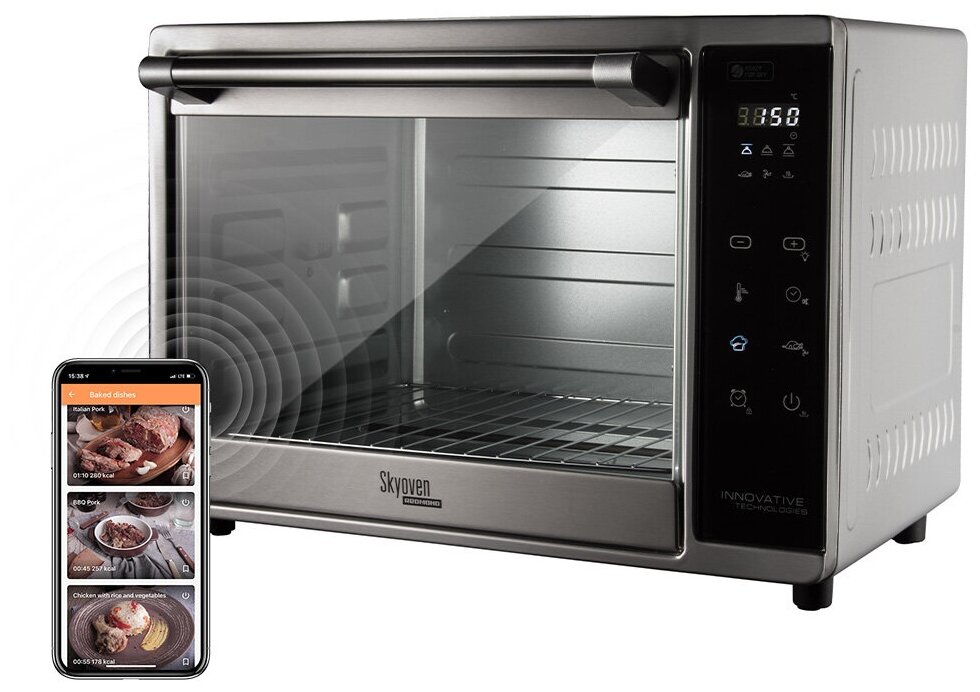 REDMOND SkyOven RO-5706S сочетает компактные габариты 49×30×35 см с вместительной камерой 35 литров. В базовую комплектацию входят: