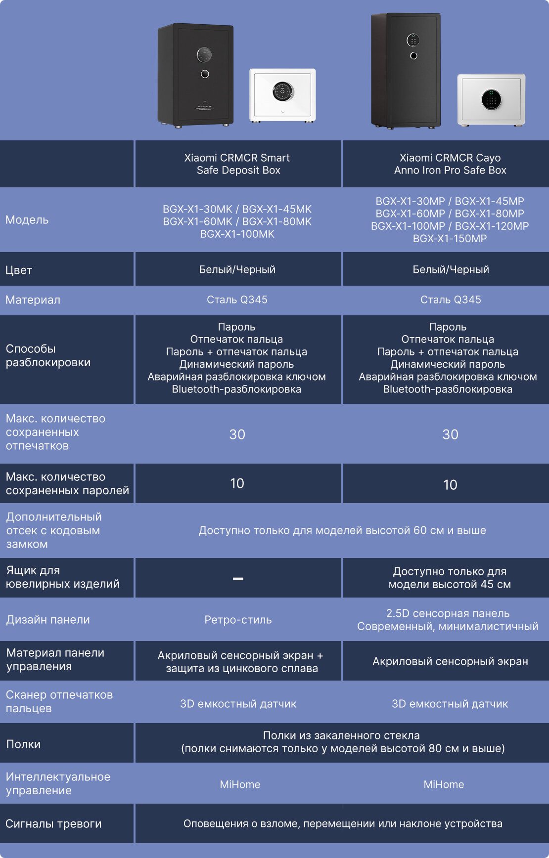 Умный сейф Xiaomi CRMCR Cayo Anno Iron Pro (BGX-X1-45MP) сочетает заводские стандарты защиты банковских хранилищ с технологией управления доступом по биометрии. Модель сертифицирована по стандарту IEC 60839-11-1:2020 как устройство класса безопасности II для гражданского использования.