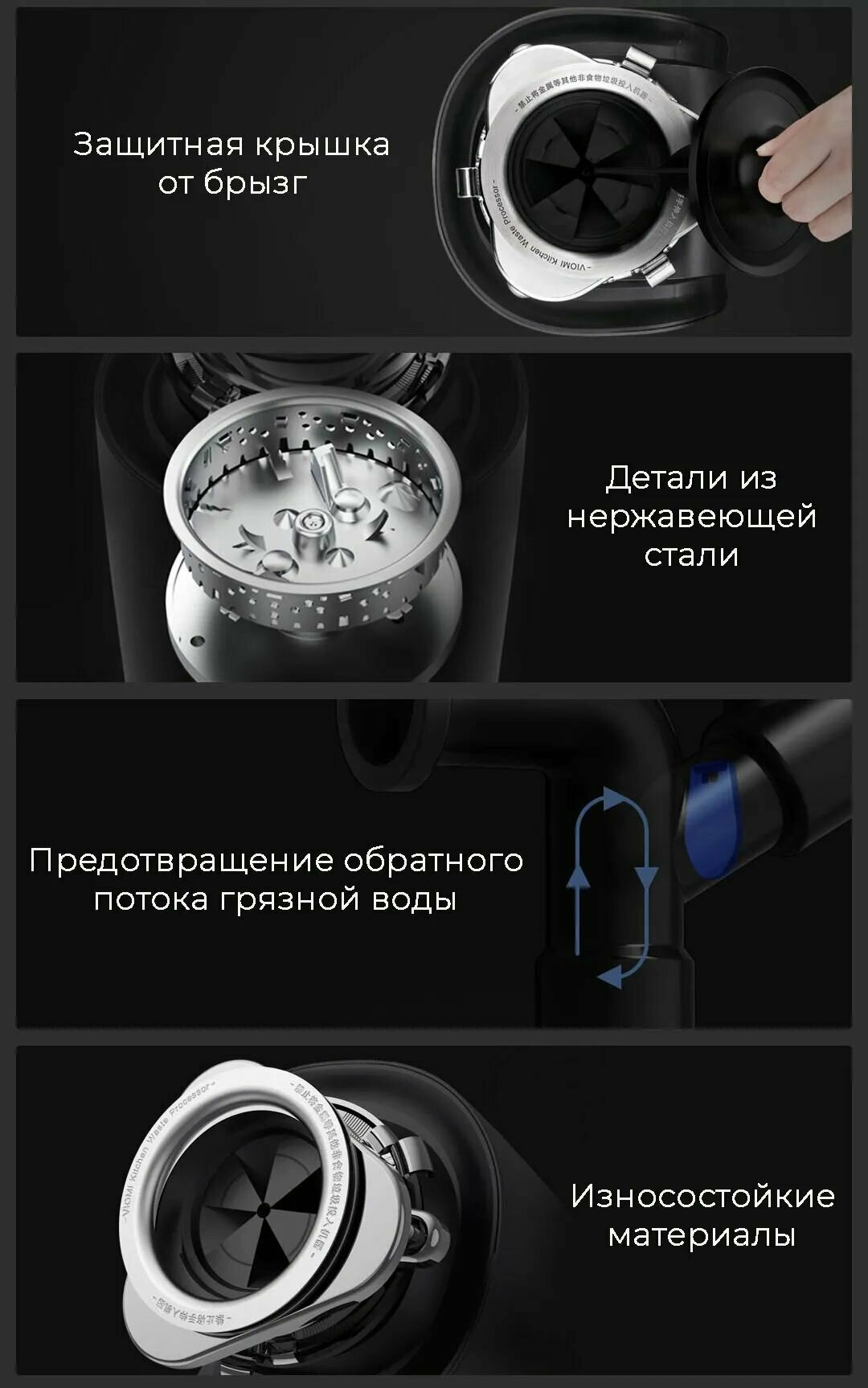Мощность двигателя 550 Вт обеспечивает три режима работы при 2800-3250 об/мин. Трехступенчатая система измельчения справляется с овощными очистками, рыбными костями и фруктовыми шкурками. В тестах устройство перерабатывает 1.2 кг отходов за 3 минуты – на 15% быстрее аналогов.