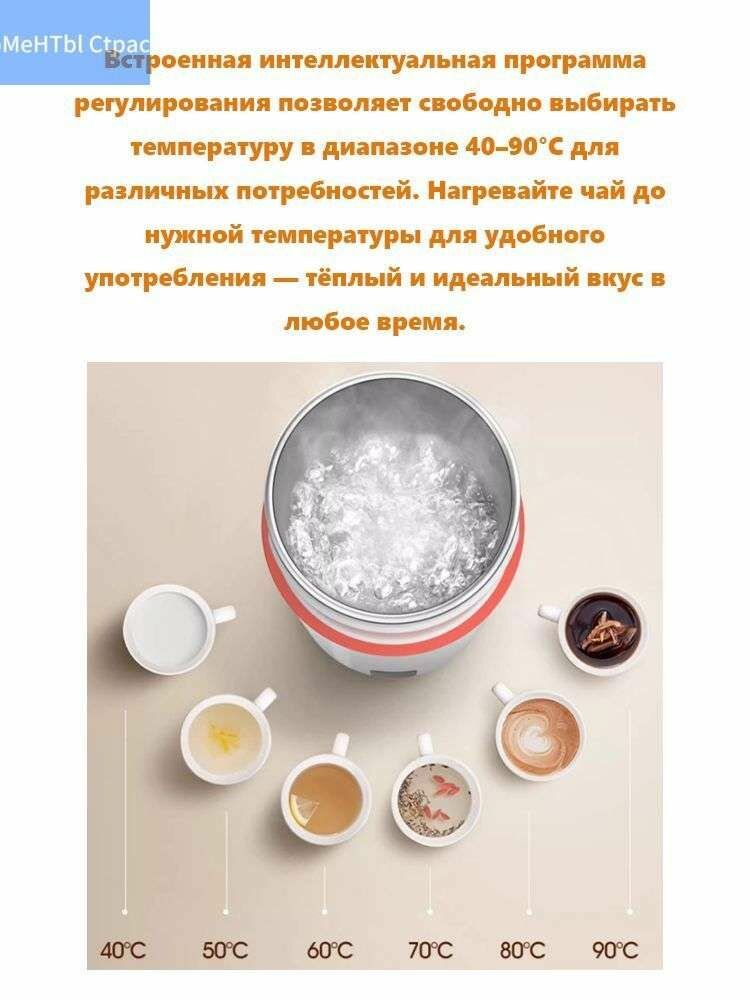 - Объем 350 мл оптимален для индивидуального использования - сопоставим с моделями Xiaomi Viomi Cup и Redmond SkyCup M310S. Вместительности хватает на порцию кофе или 2-3 чайные чашки.