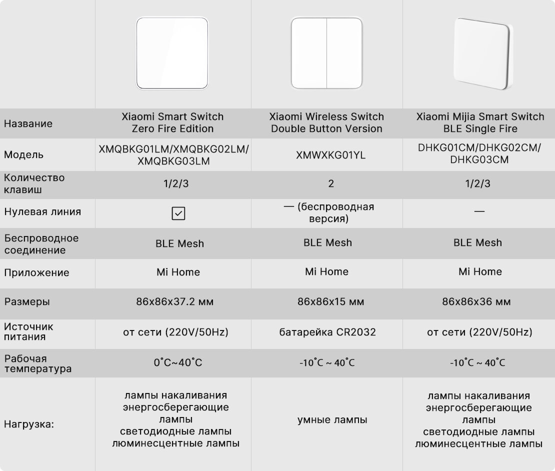 | Aqara Smart Wall Switch | Zigbee 3.0 | 2500Вт | 3 199₽ |