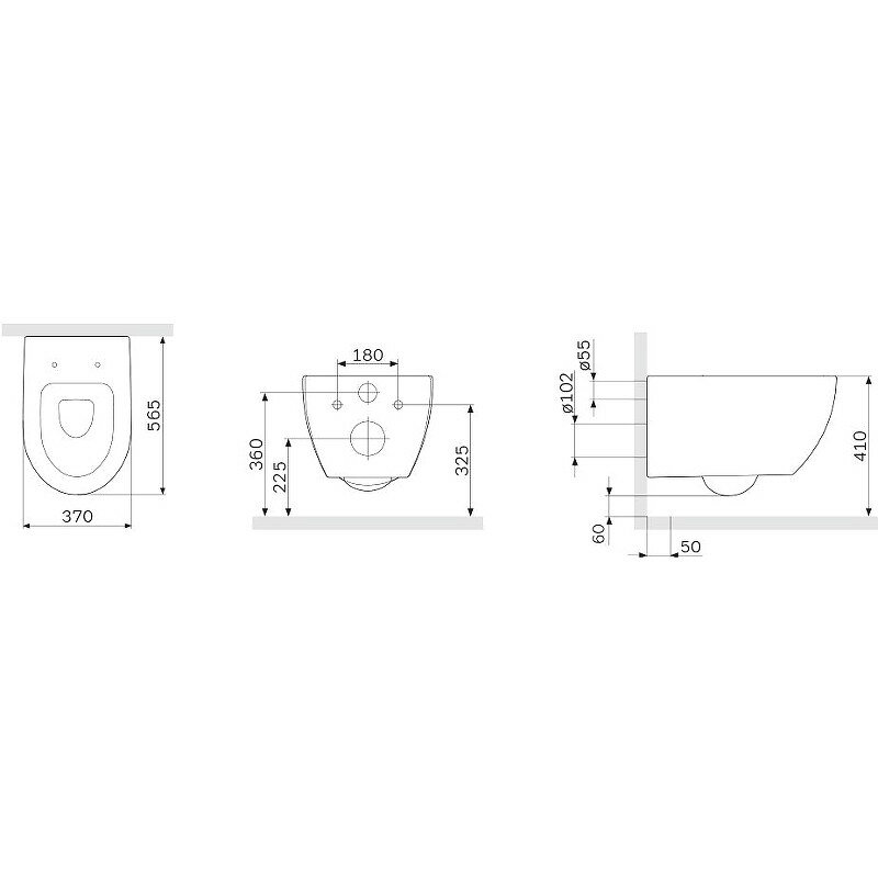 Для подвесного монтажа требуется инсталляционная рама (продается отдельно). Минимальная толщина несущей перегородки — 15 см. В комплекте - крепежные болты класса прочности 8.8 с антикоррозийным покрытием. Горизонтальный выпуск 180 мм совместим со стандартными российскими канализационными системами.