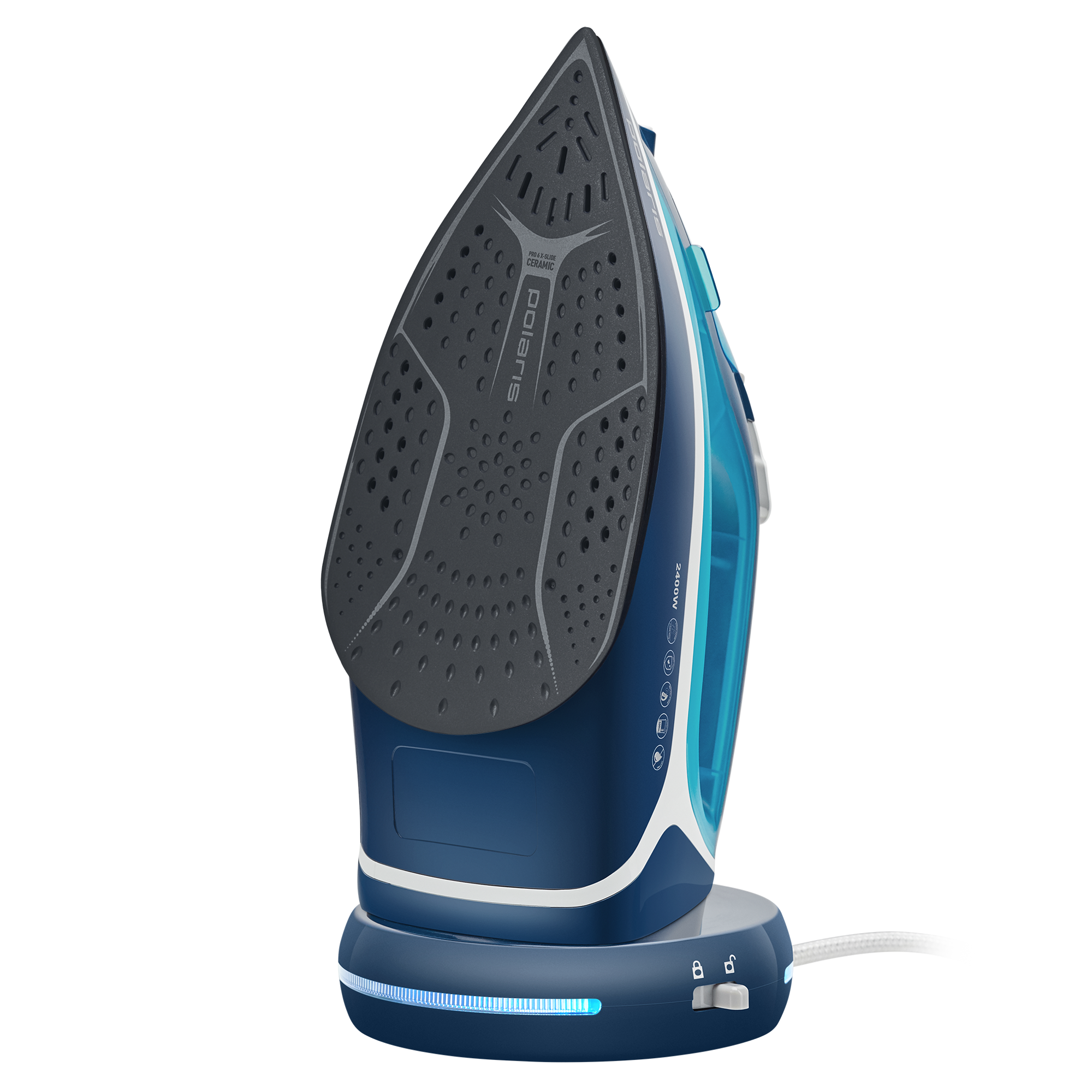 Беспроводной режим Polaris PIR 2444K Cordless освобождает от ограничений проводных моделей. При полной зарядке утюг обрабатывает 5-7 вещей без подключения к сети. Встроенный аккумулятор поддерживает температуру подошвы 30 минут в автономном режиме – достаточно для экстренной глажки рубашки или блузки.