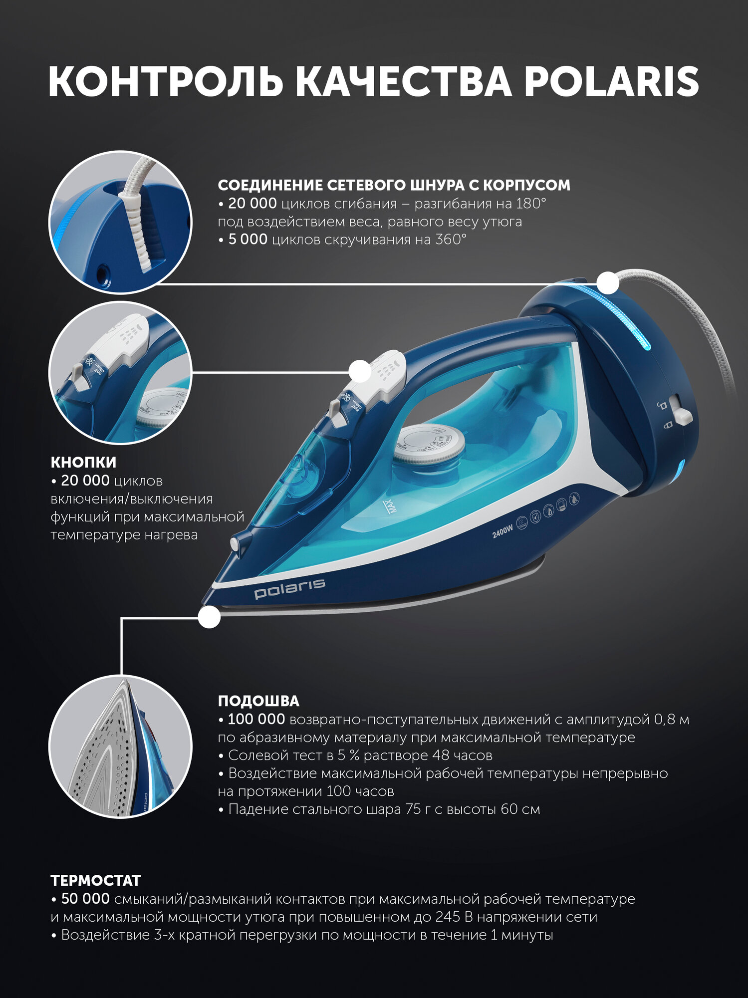Технология Cord[LESS] позволяет отпаривать шторы, пиджаки и пальто без гладильной доски. Тесты в лаборатории Polaris подтверждают: