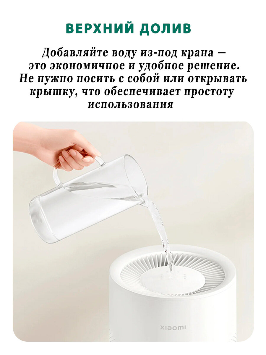Дисплей, индикация работы, регулировка скорости вентилятора/интенсивности испарения, увлажнение воздуха, управление со смартфона