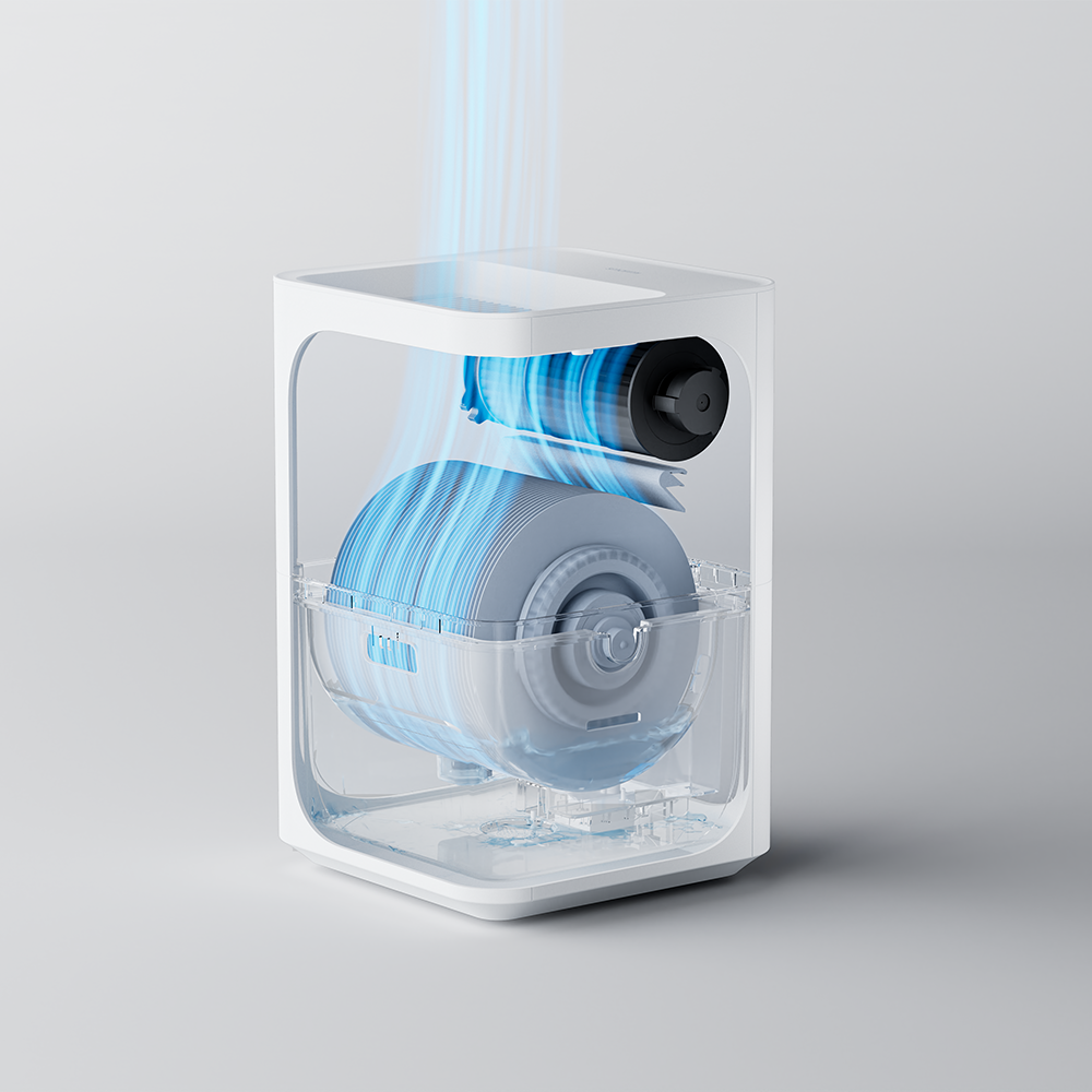 Традиционный принцип увлажнения SMARTMI Humidifier 3 использует естественное испарение через фильтр с антибактериальной пропиткой. Фильтрующий картридж задерживает минеральные примеси и бактерии, что устраняет проблему белого налёта. Максимальная производительность 240 мл/ч обеспечивает влажность 40-65% в помещениях до 36 м².