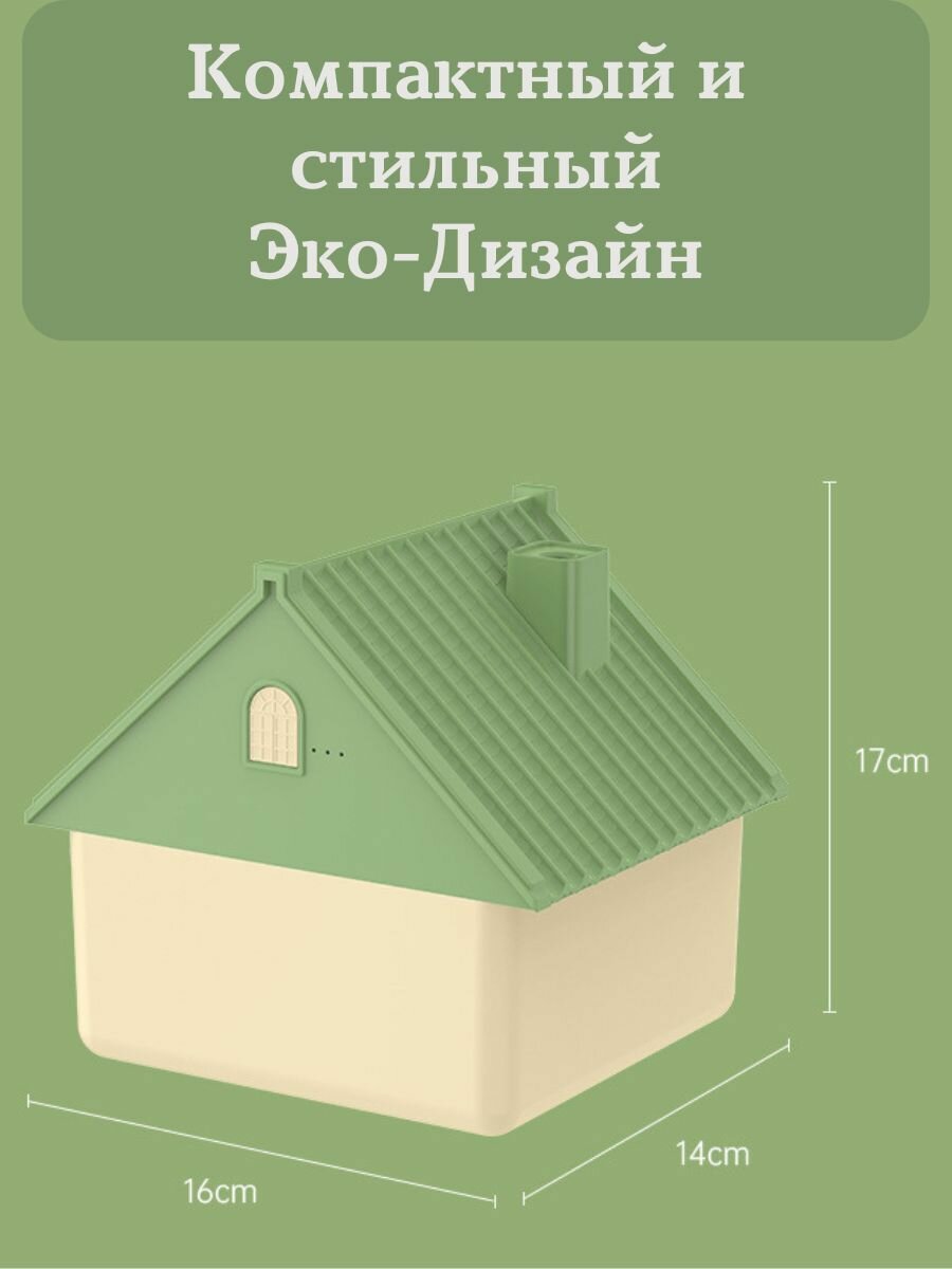 Электронный увлажнитель Xiaomi "Домик" поддерживает оптимальную влажность на площади до 41 м² благодаря ультразвуковой технологии распыления. Резервуар объёмом 1 литр расходует 500 мл воды в час, что требует долива каждые 2 часа при интенсивной работе: