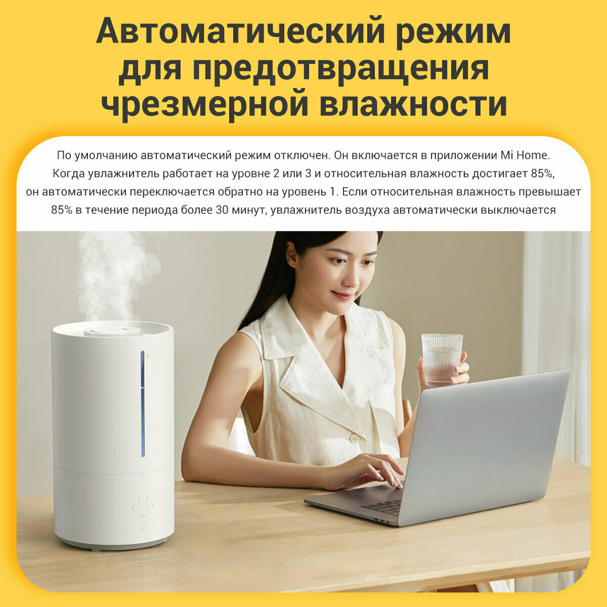 Интеграция с Яндекс Умный дом позволяет создавать автоматические сценарии: "ночной режим", "защита от переувлажнения", "ароматерапия перед сном". Встроенный гигрометр с точностью ±3% RH автоматически отключает устройство при достижении заданных 40-70% влажности.