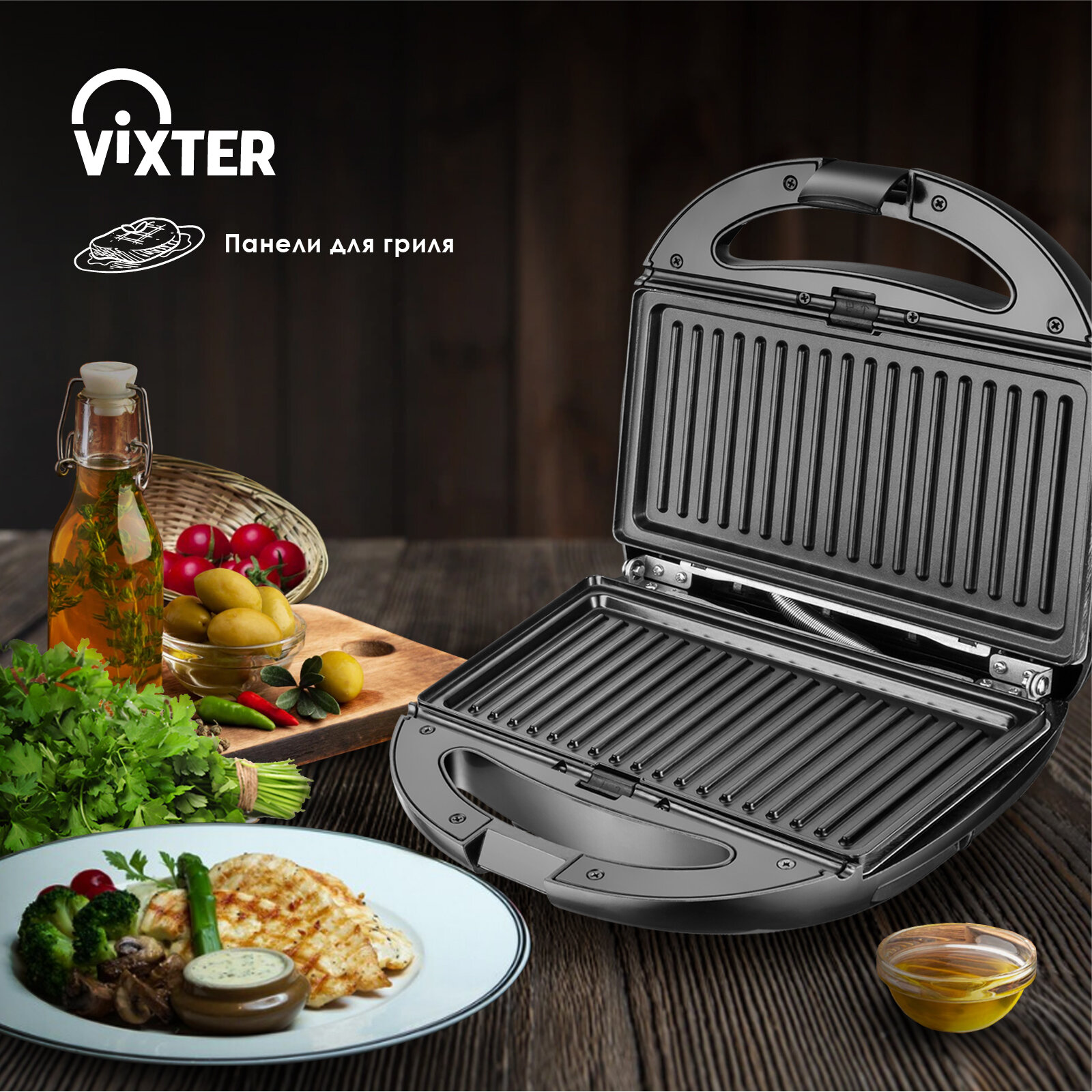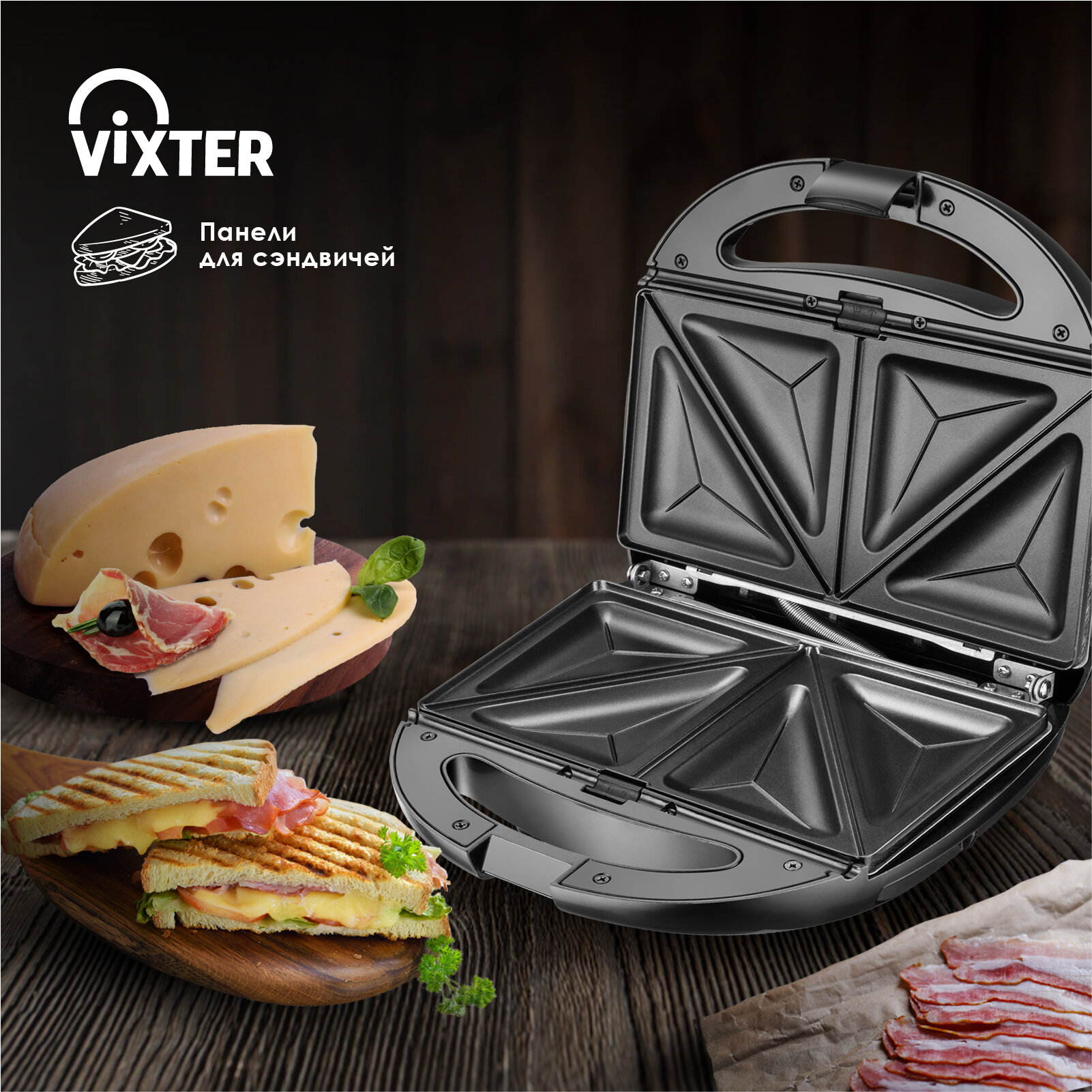Вафельница-сендвичница VIXTER DSM-3560 решает 3 главные проблемы компактной кухонной техники: ограниченный функционал, сложность ухода и недолговечность антипригарного покрытия. С 3 сменными панелями вы готовите вафли, гриль и сэндвичи на одном устройстве размером 23×26.5×10 см.