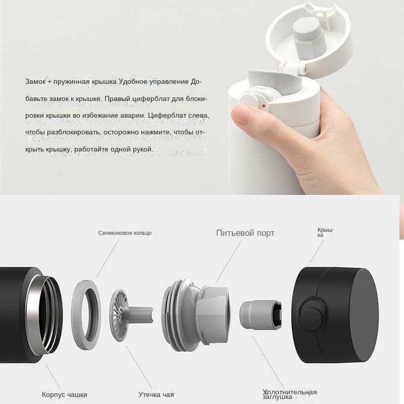 Вакуумный слой между стенками из нержавеющей стали 316 толщиной 0,3 мм обеспечивает сохранение температуры напитков до 12 часов (тесты лаборатории Xiaomi при +95°C):