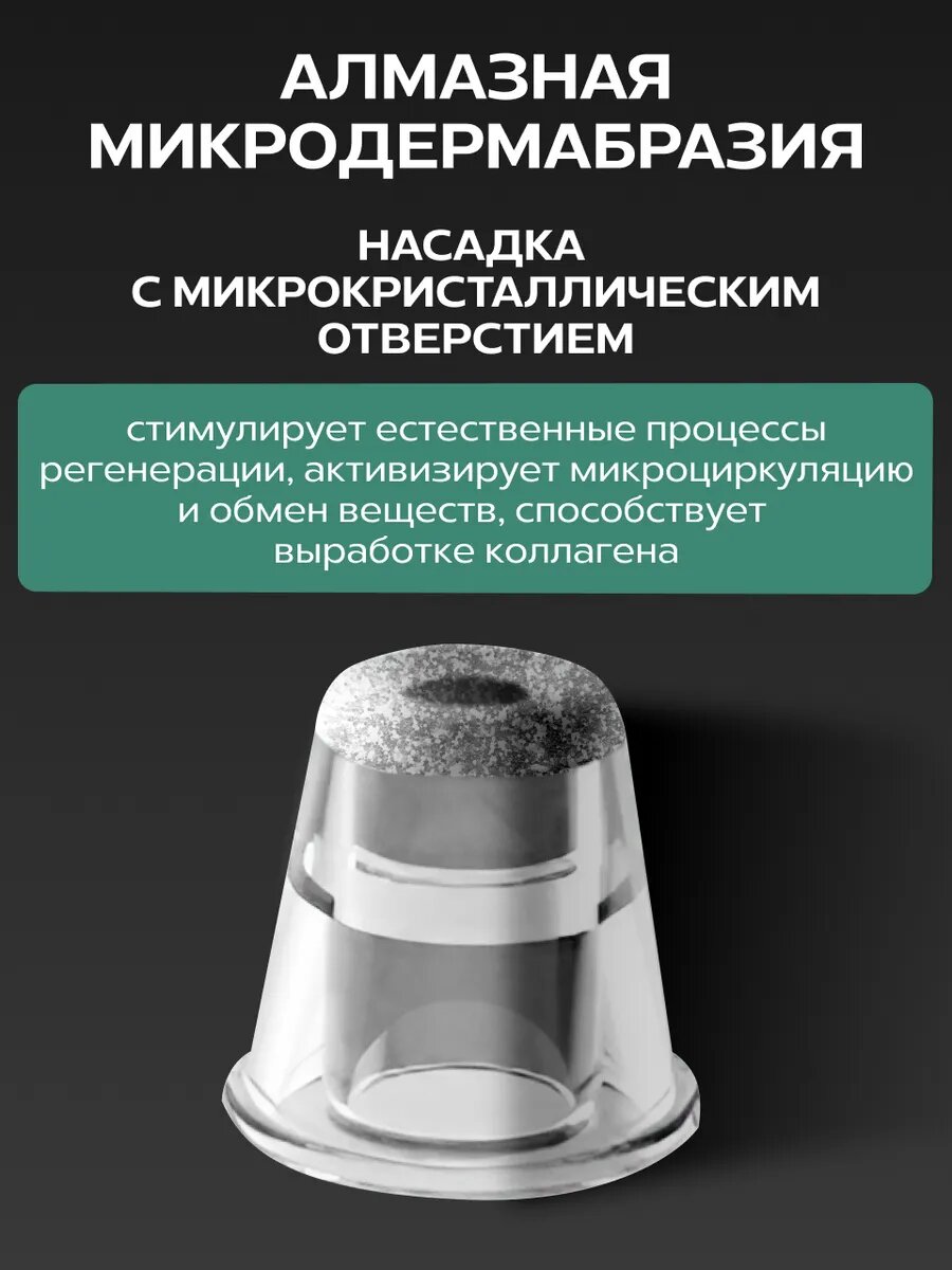Универсальные силиконовые насадки включают 3 варианта диаметра для обработки лба, подбородка и носогубной зоны. Материал устойчив к дезинфицирующим растворам и не вызывает аллергии.