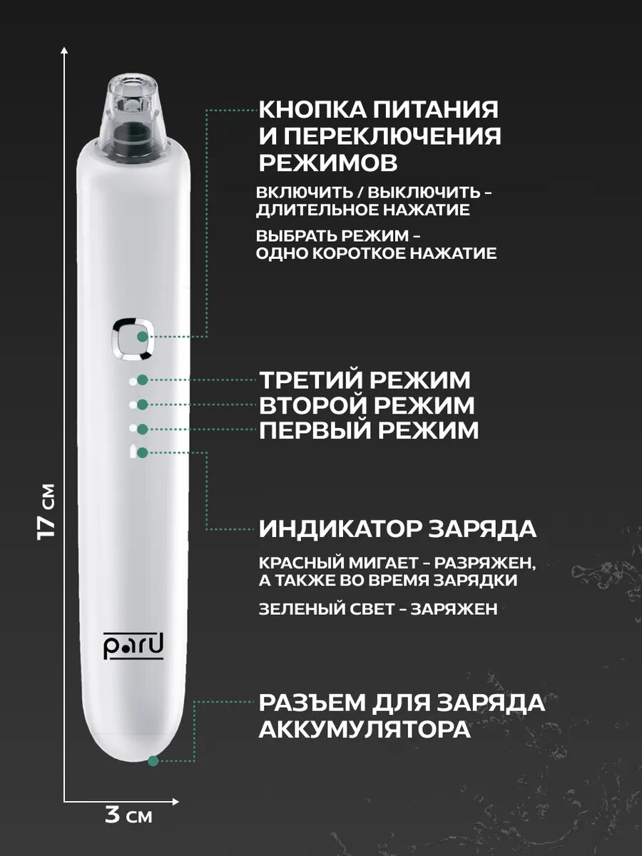 Вакуумный очиститель работает по принципу воздушного насоса с регулируемой силой всасывания (от 80 до 200 kPa). При контакте с кожей создается отрицательное давление, которое: