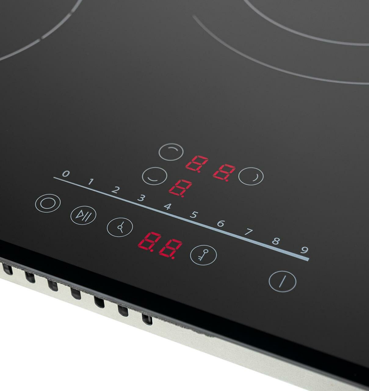 При проливе жидкости на рабочую поверхность срабатывает автоматическое ограничение от КЗ (испытания ГОСТ Р МЭК 60335-2-6). После отключения питания дисплей показывает остаточное тепло конфорок — идеально для приготовления блюд томлением.