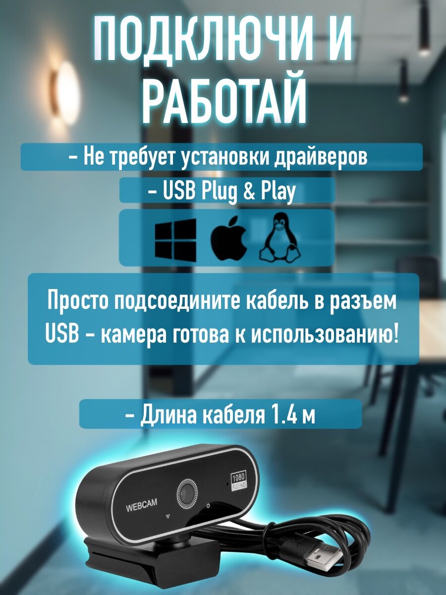 - Поддержка FullHD 1080p обеспечивает детализированную картинку в Zoom/Skype