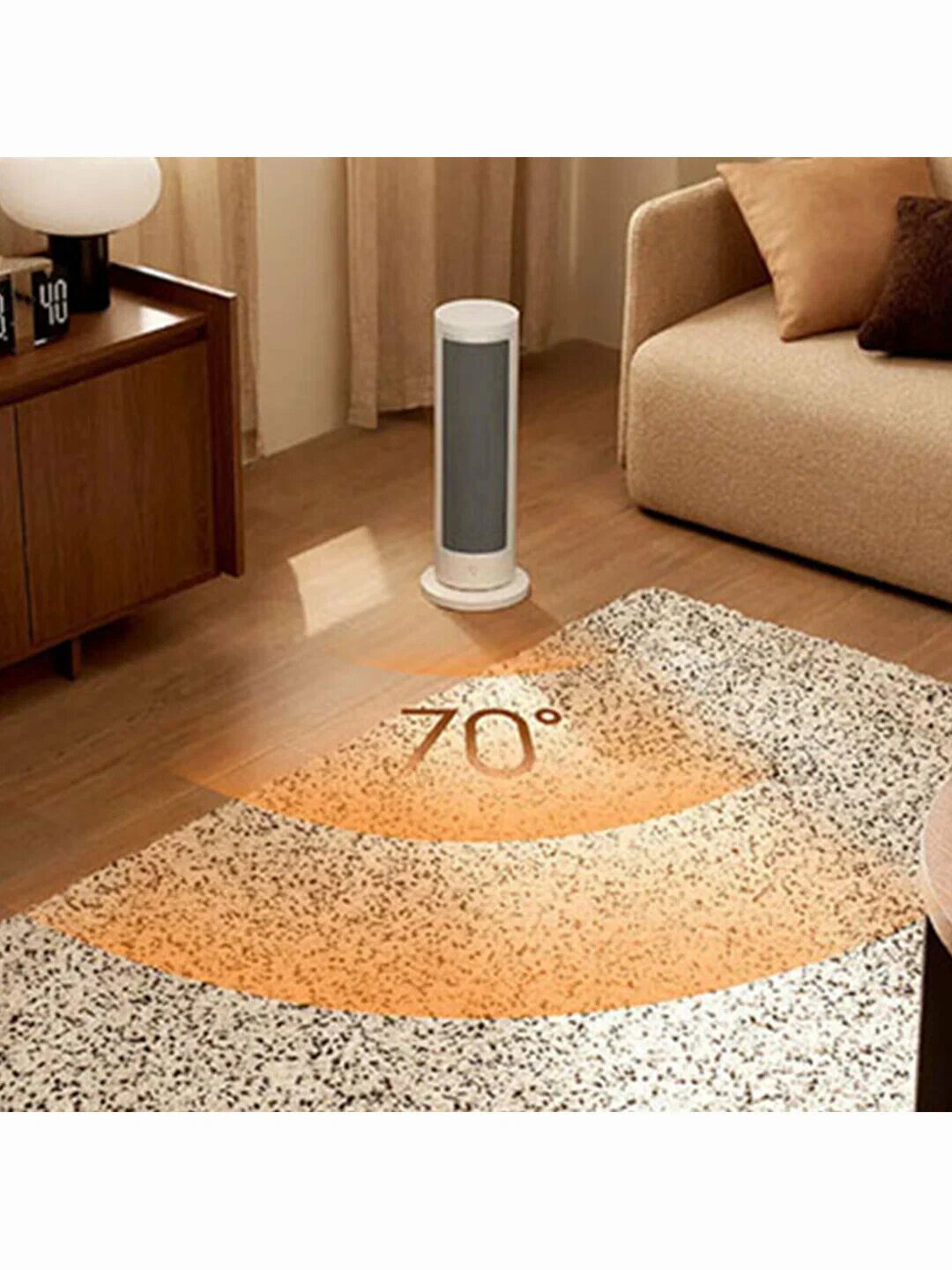 Мощность 2000W/1000W регулируется поворотным механическим термостатом или через приложение Xiaomi Mi Home. Датчик температуры поддерживает точность +0.5°C от заданного значения.