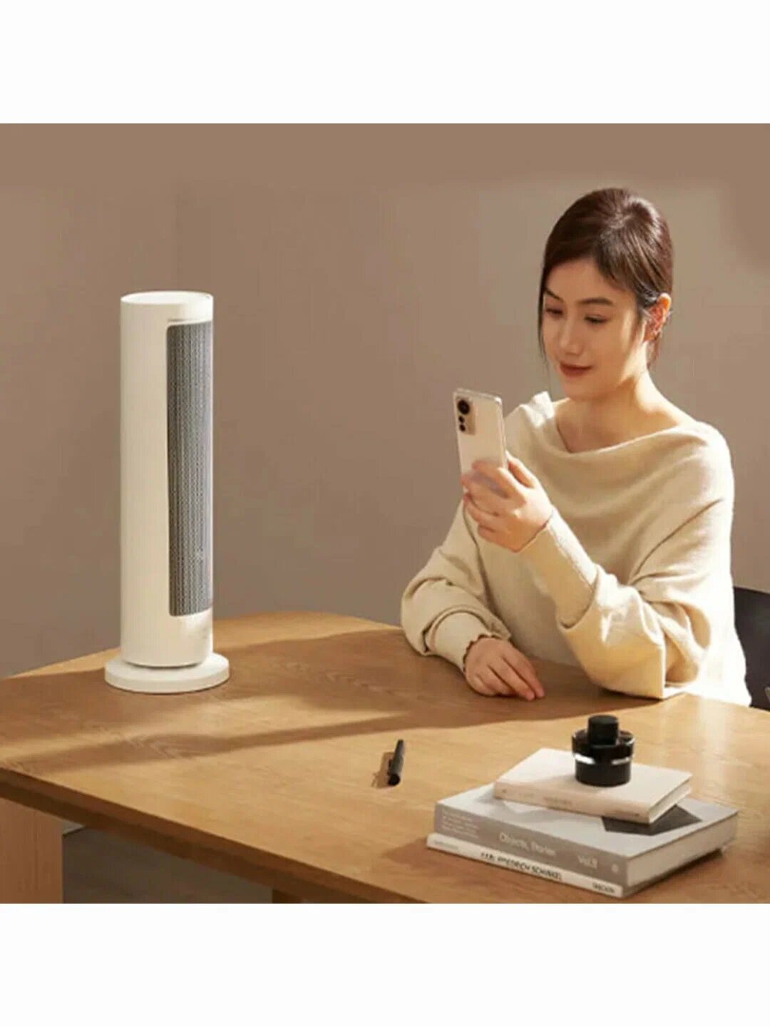 Керамический нагревательный элемент обеспечивает быстрый прогрев помещения за 3 минуты без эффекта "сжигания кислорода". Компактный вертикальный корпус (75x25x18 см) позволяет размещать устройство: