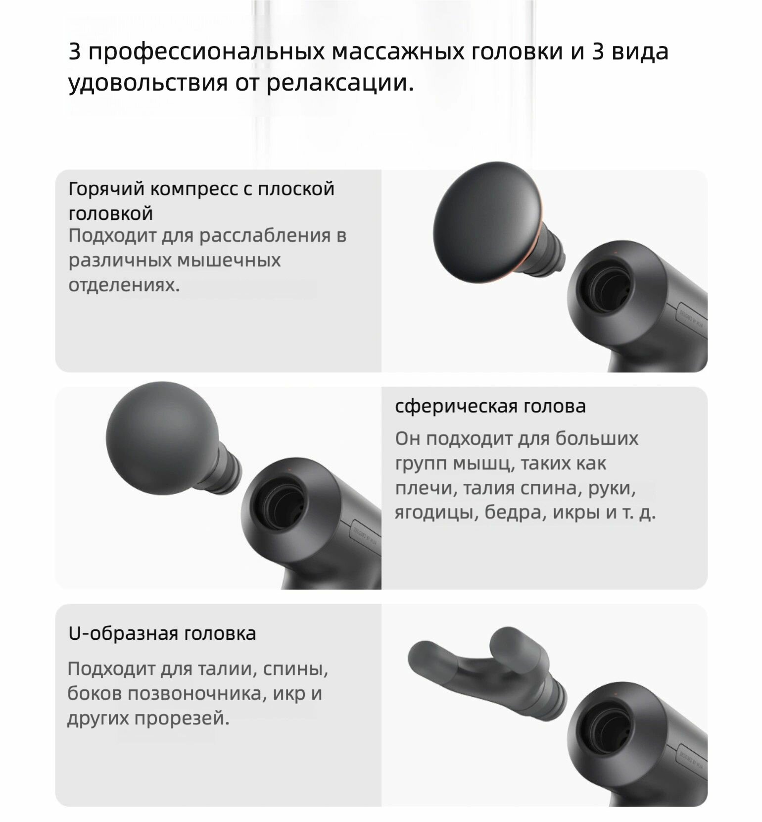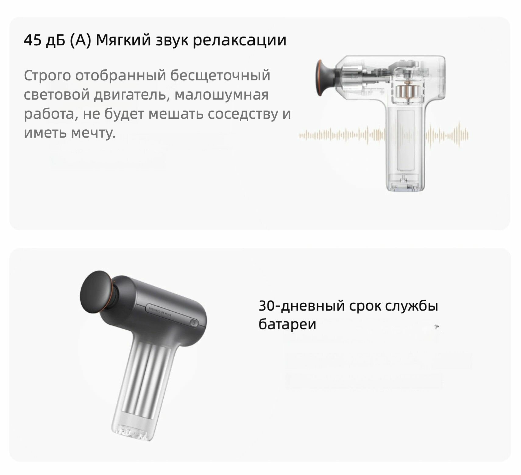- 6 программ массажа: импульсный (до 3200 уд/мин), шиацу, постукивающий режим и 3 фирменных техники разработки Xiaomi
