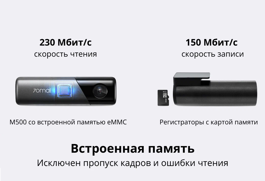 По сравнению с Xiaomi 70mai A800 модель M500 компактнее на 25% и потребляет на 20% меньше энергии. В отличие от Nextbase 622GW, здесь отсутствует GPS-трекер, но адаптировано питание под российские авто.