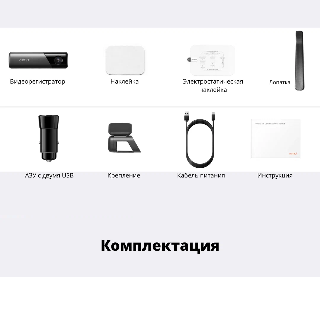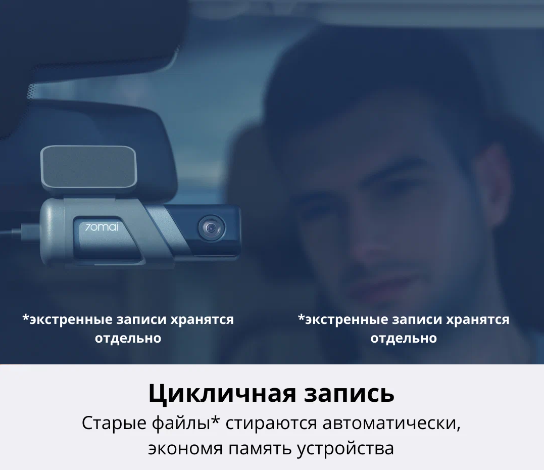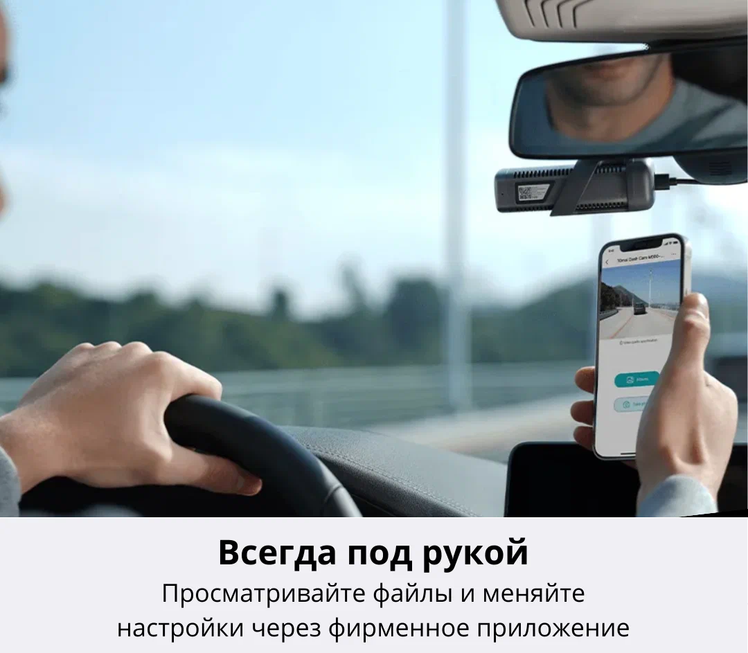 В набор входит усиленный кабель питания с предохранителем для подключения к бортовой сети. Для интеллектуального управления скачайте приложение 70mai Pro (iOS/Android), где доступны: