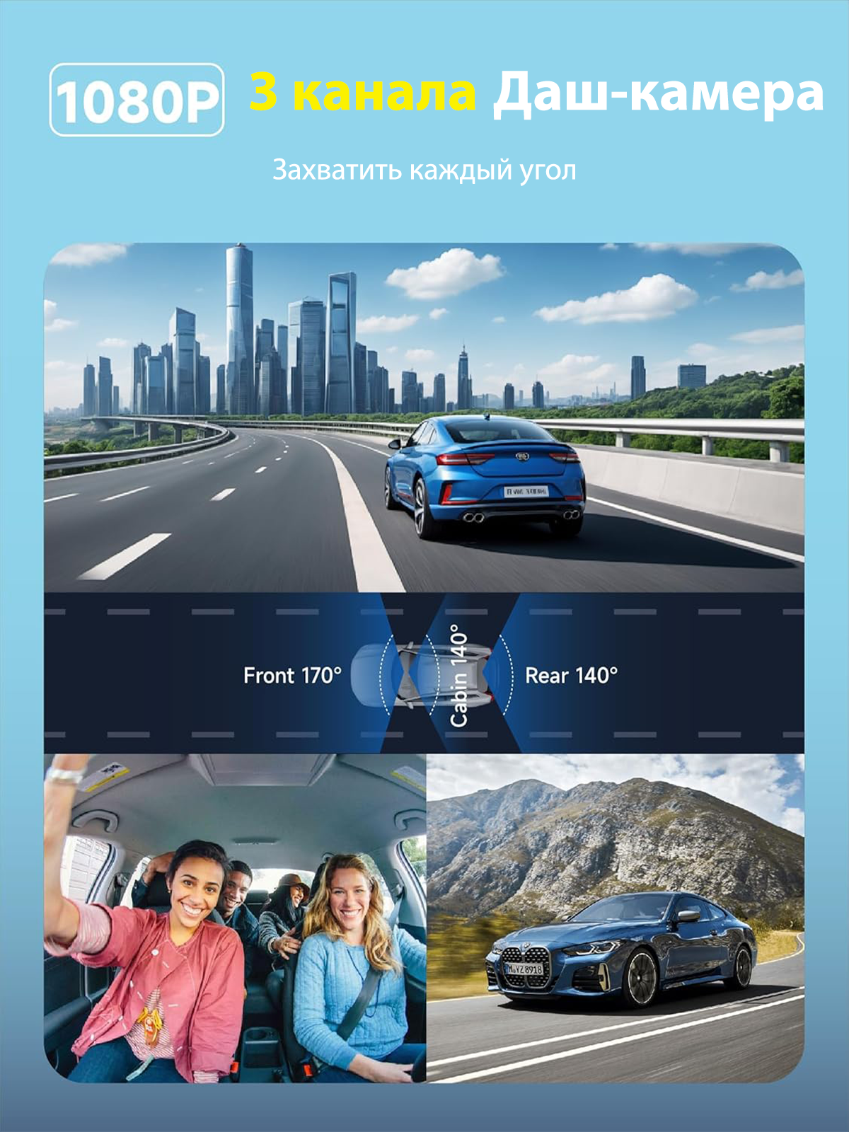 - Интеллектуальная коррекция освещения WDR компенсирует засветы фар и темные участки дороги