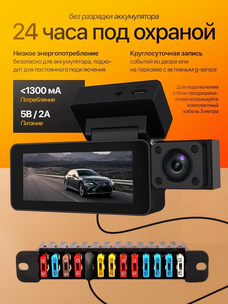 - Тройная синхронизация: передняя камера 170°, задняя 140°, салонная с ИК-фильтром