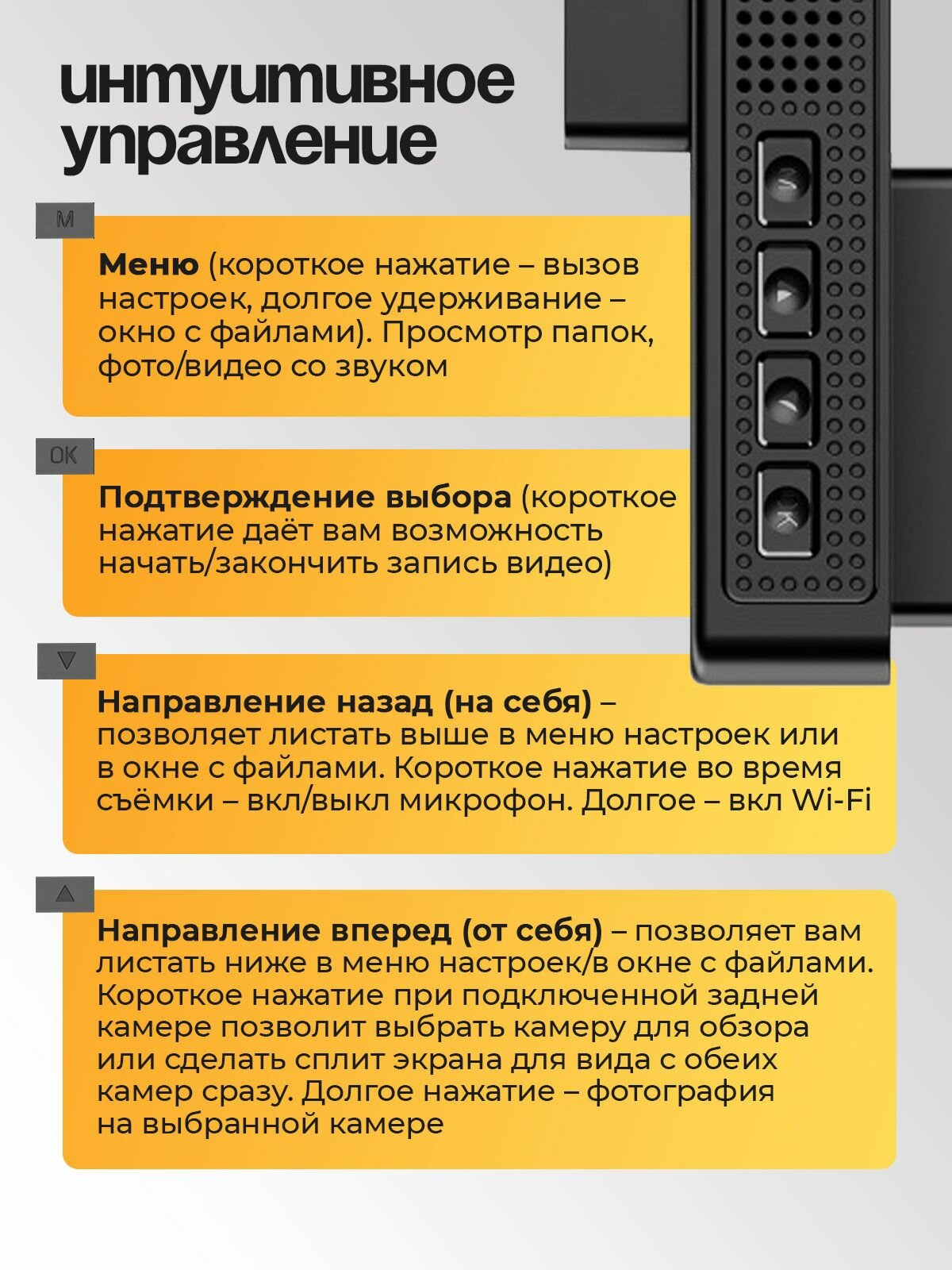 - Синхронизация с GPS регистрирует скорость и координаты на обоих каналах