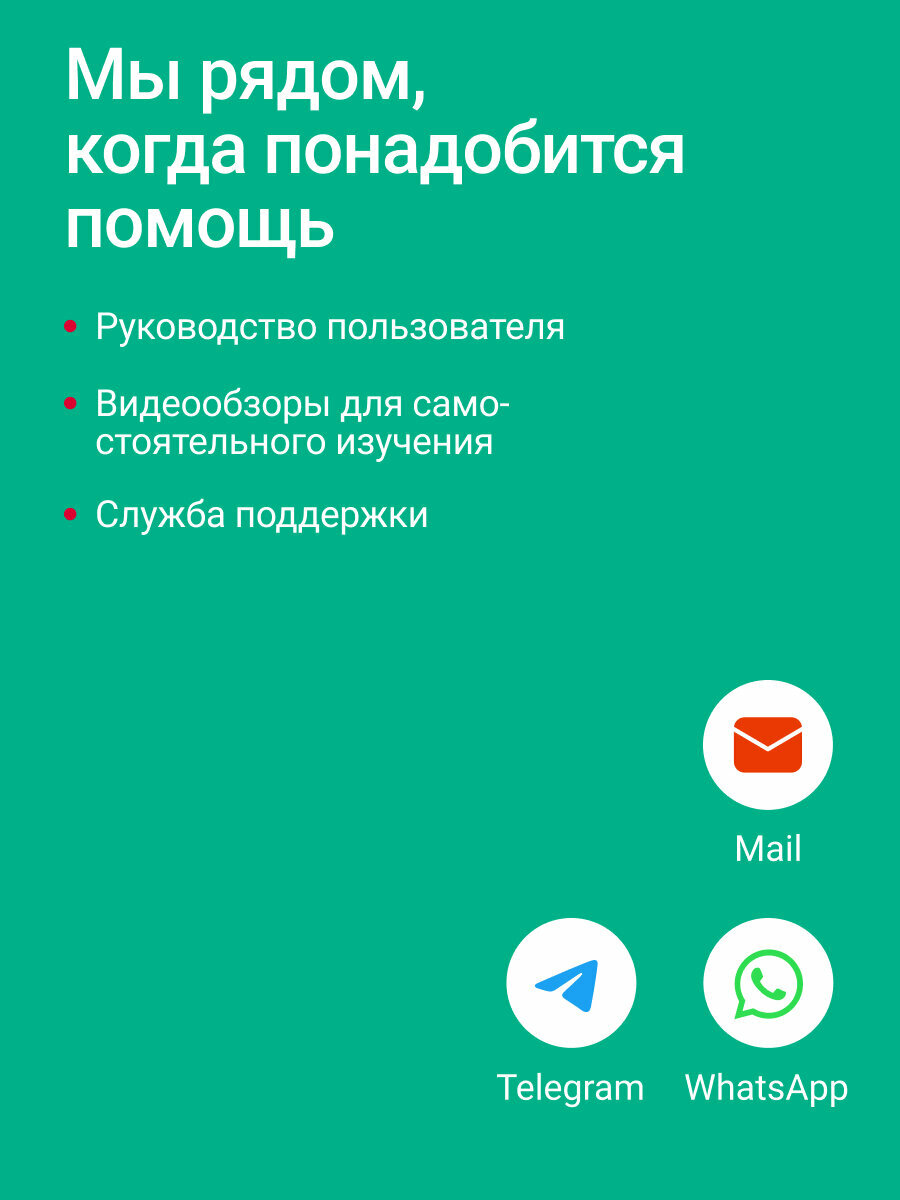 Официальная гарантия 24 месяца включается после регистрации устройства. Сервисные центры в 15 городах России обеспечивают: