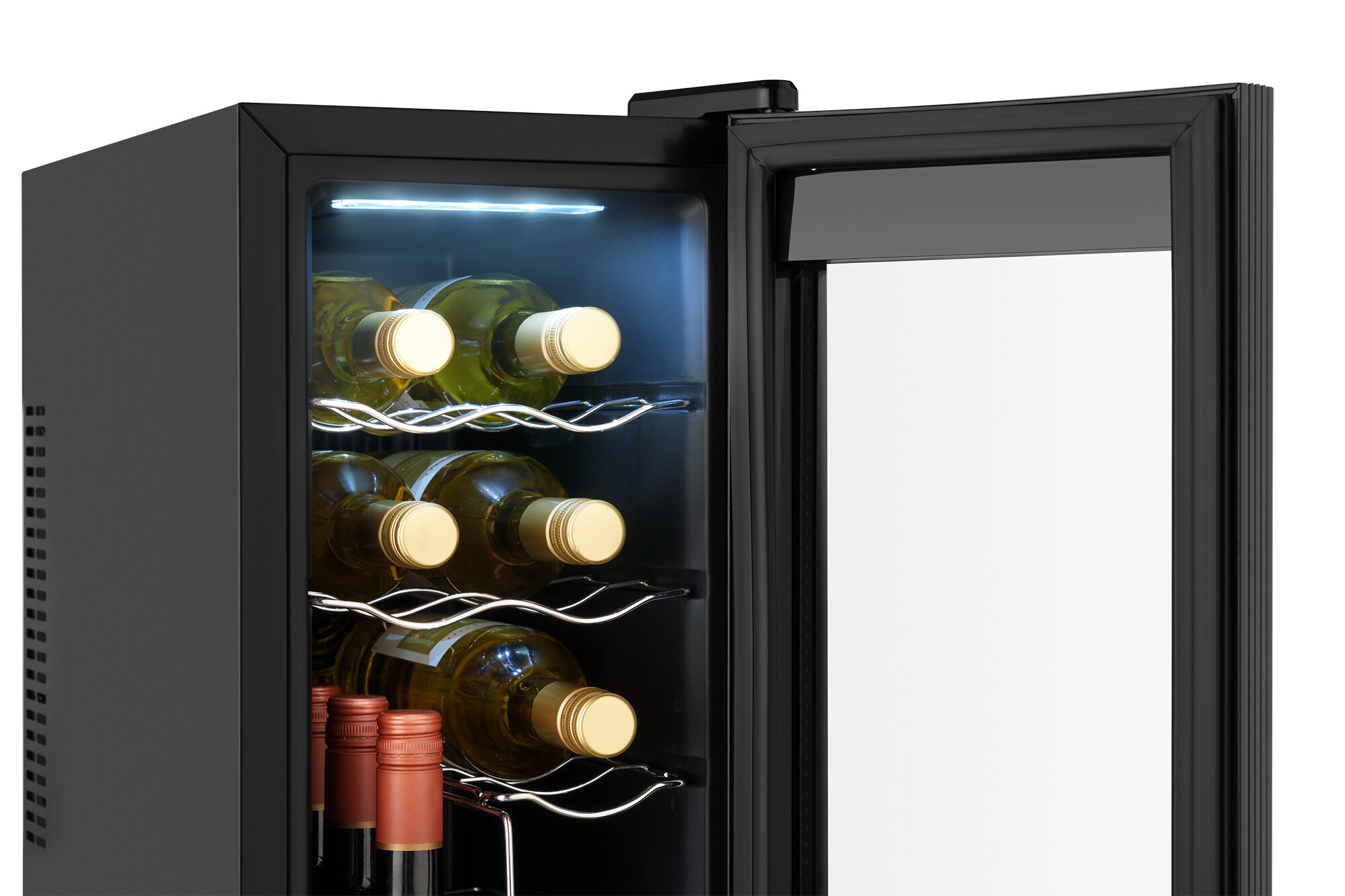 - Цифровой контроль температуры с диапазоном от +5°C до +18°C для правильного хранения разных вин