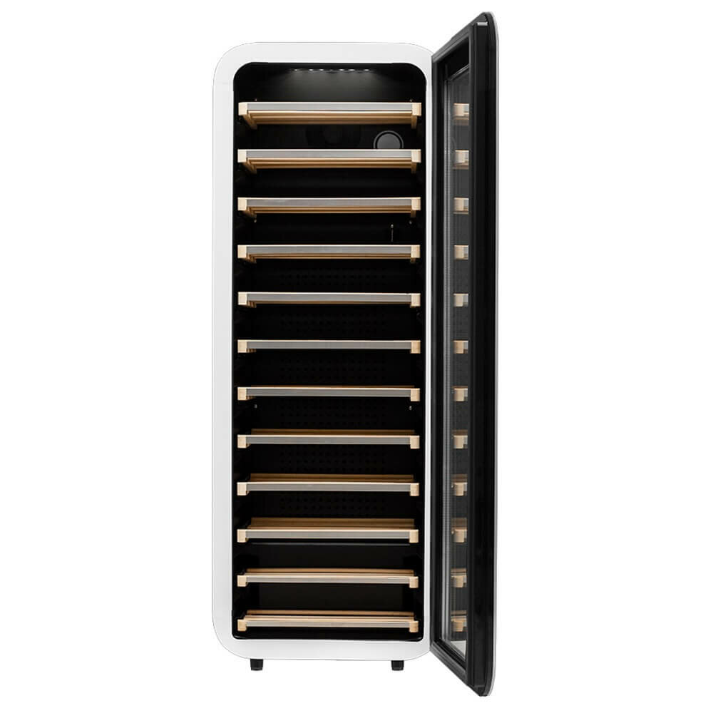 12 деревянных полок сдерживают до 34 стандартных бордосских бутылок. Для нестандартных форматов: