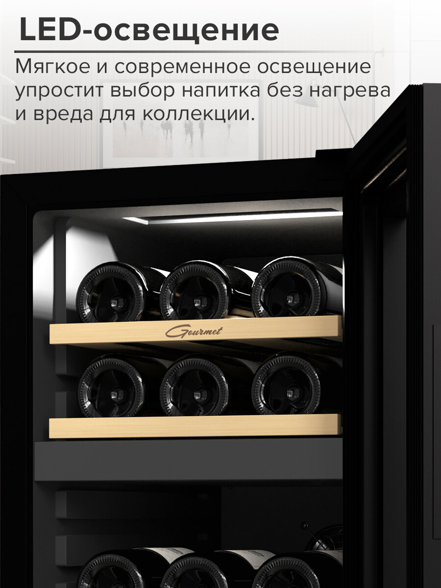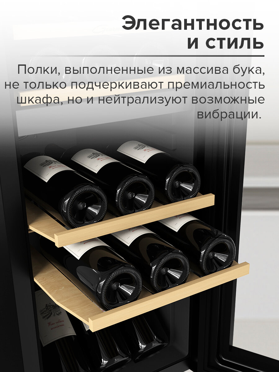 Цифровой дисплей на дверце позволяет точно настраивать параметры хранения. Датчики температуры работают с погрешностью ±0.5°C, что исключает переохлаждение коллекционных экземпляров. 5 полок французского типа предназначены для бутылок диаметром до 90 мм — они поддерживают корпус в оптимальном положении для сохранения пробки.