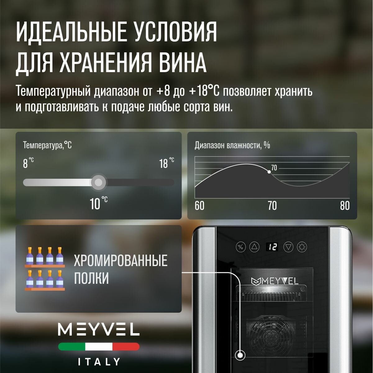 - Через Wi-Fi модуль Meyvel Connect (продаётся отдельно) возможен контроль температуры из приложения