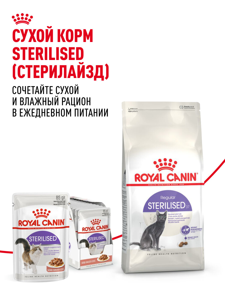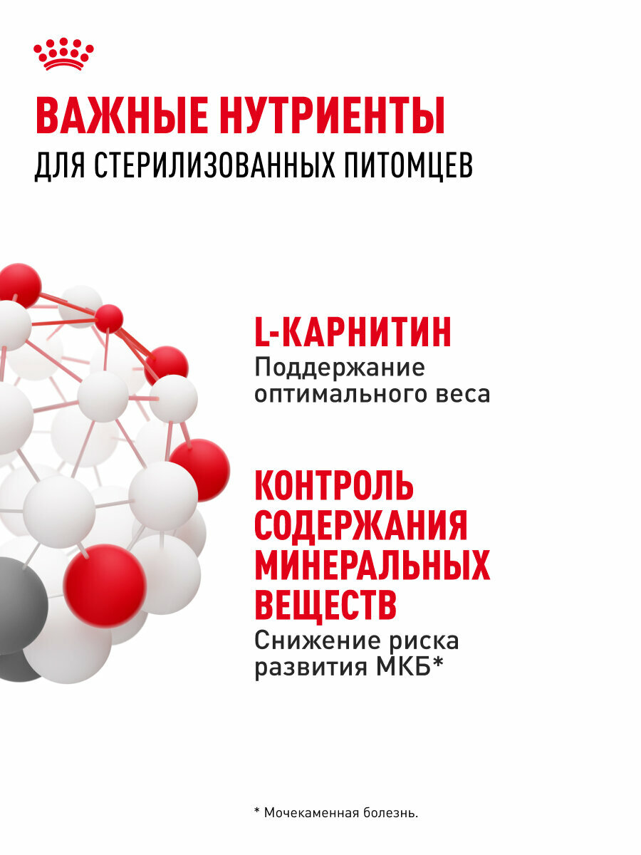 После операции у кошек замедляется метаболизм на 20-30%, что приводит к риску ожирения. Royal Canin Sterilised решает эту проблему за счет: