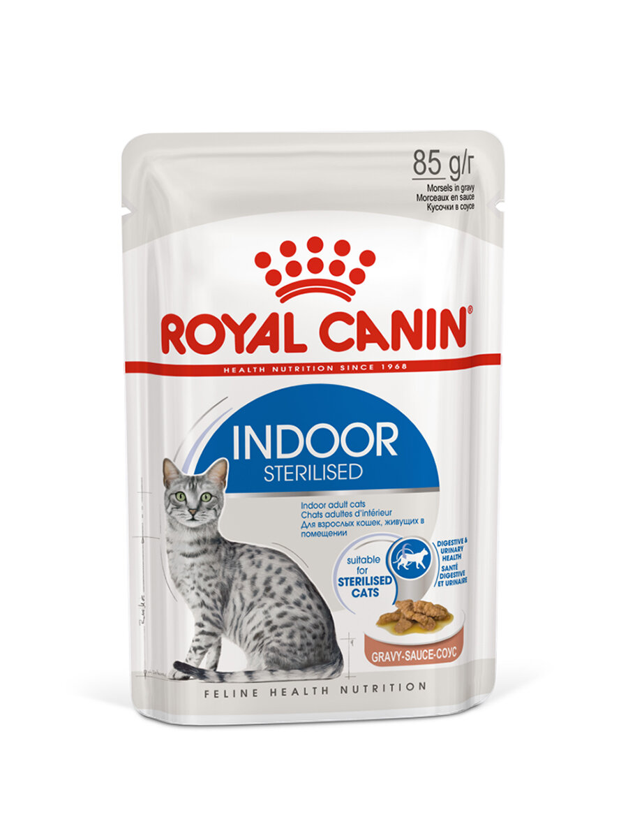 По данным клинических исследований Royal Canin, при постоянном кормлении влажным кормом Indoor Sterilised:
