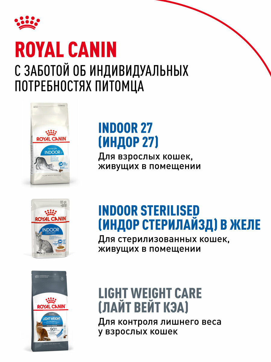 Корм Royal Canin Indoor Sterilised разработан специально для кастрированных котов и стерилизованных кошек, ведущих домашний образ жизни. Особенности состава:
