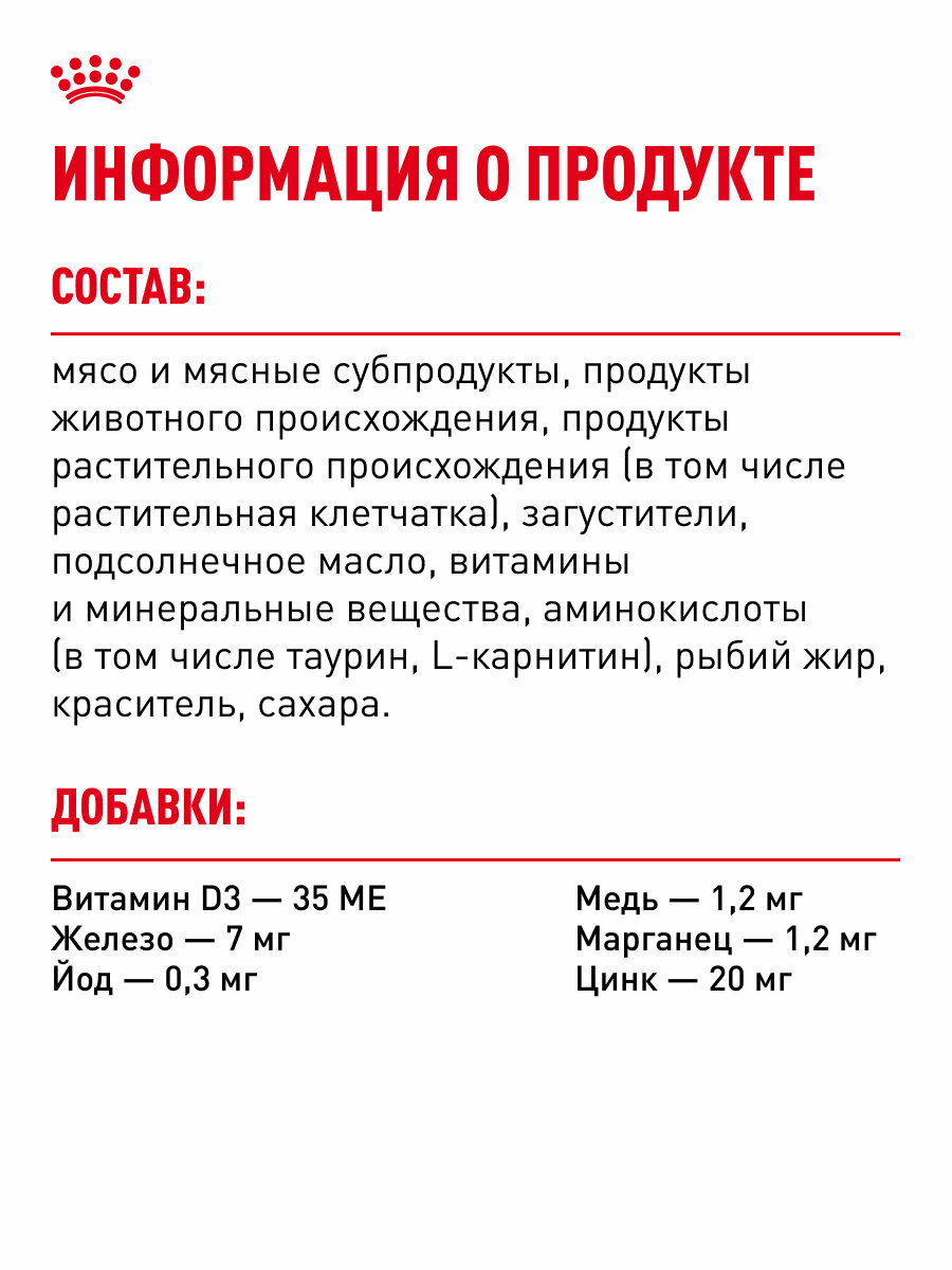 Для перехода на новый корм требуется 7 дней: смешивайте Royal Canin с предыдущим питанием в пропорции 25%/75%, постепенно увеличивая долю нового продукта.