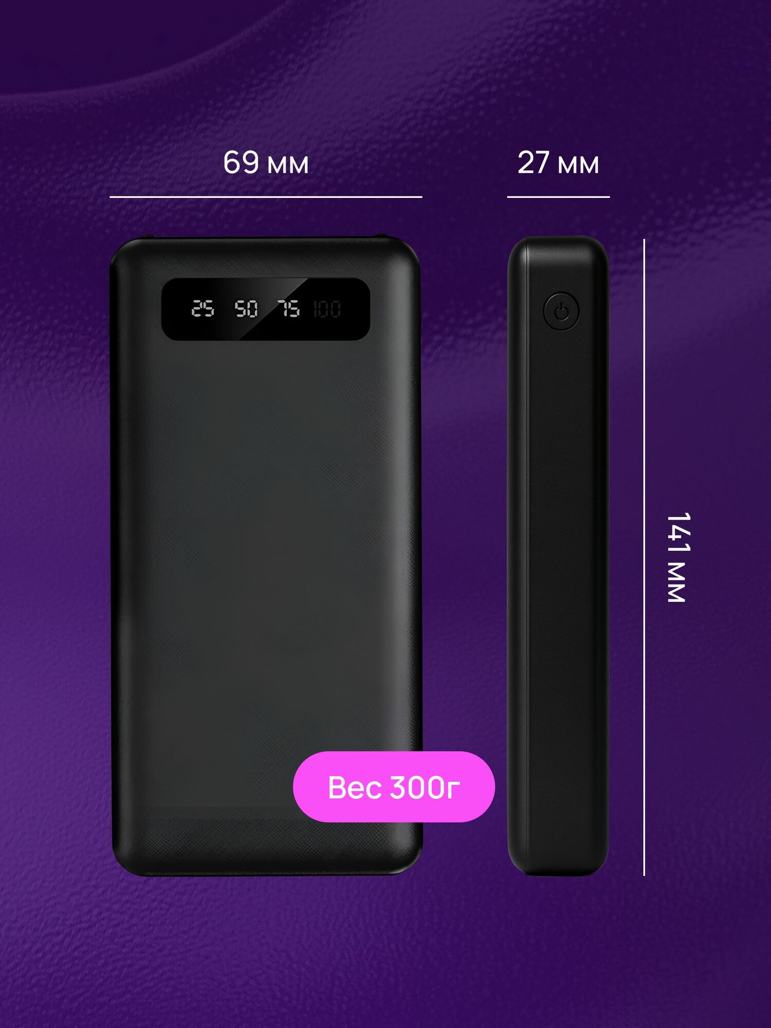 - Габаритные параметры: 142×72×20 мм при весе 396 г - на 12% компактнее аналогов в классе 20000 мАч
