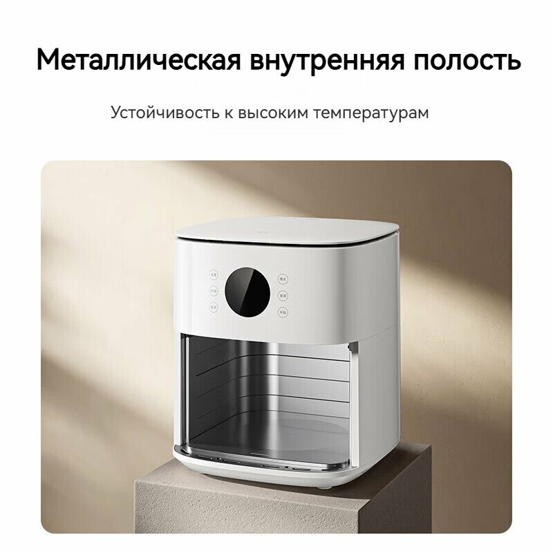 Воздушная фритюрница Xiaomi Mijia S1 в белом корпусе представляет собой технологичное решение для здорового приготовления пищи. Мощность 1350 Вт обеспечивает циркуляцию горячего воздуха по технологии 360°, что гарантирует равномерную обработку продуктов без использования масла. Габариты 28×32×37 см оптимальны для размещения на малогабаритных кухнях, а объем чаши 6 литров позволяет готовить порции для семьи из 3-4 человек.