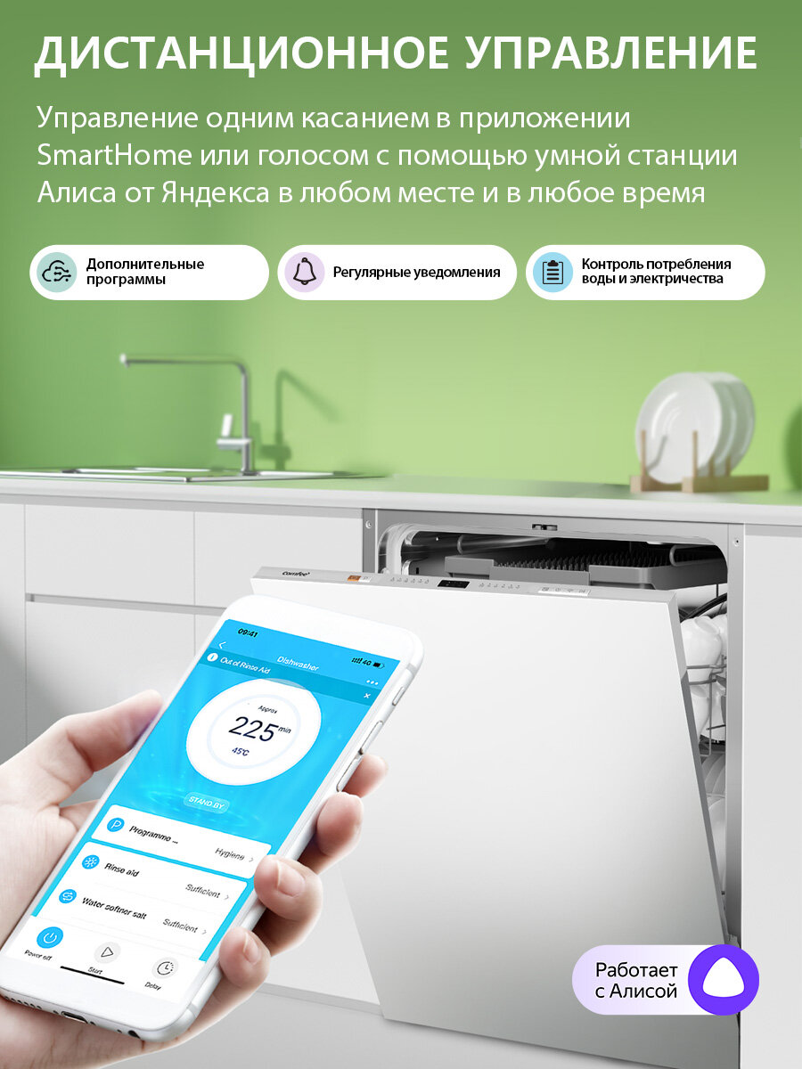 - Звуковой сигнал оповещает о завершении мойки - функцию можно отключить в настройках