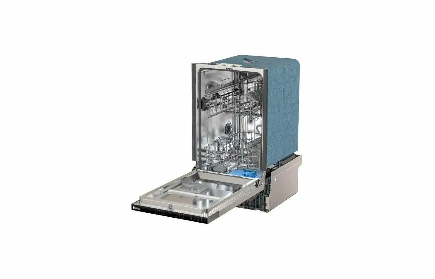 При разработке модели HAIER HDWE10-394RU инженеры устранили типичные недостатки узких посудомоечных машин: