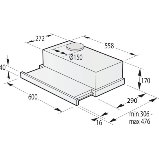 Встраиваемая вытяжка Gorenje TH62E3X имеет строгую ширину корпуса 55.8 см - этот параметр критичен для правильного монтажа в стандартные кухонные шкафы. При установке требуются: