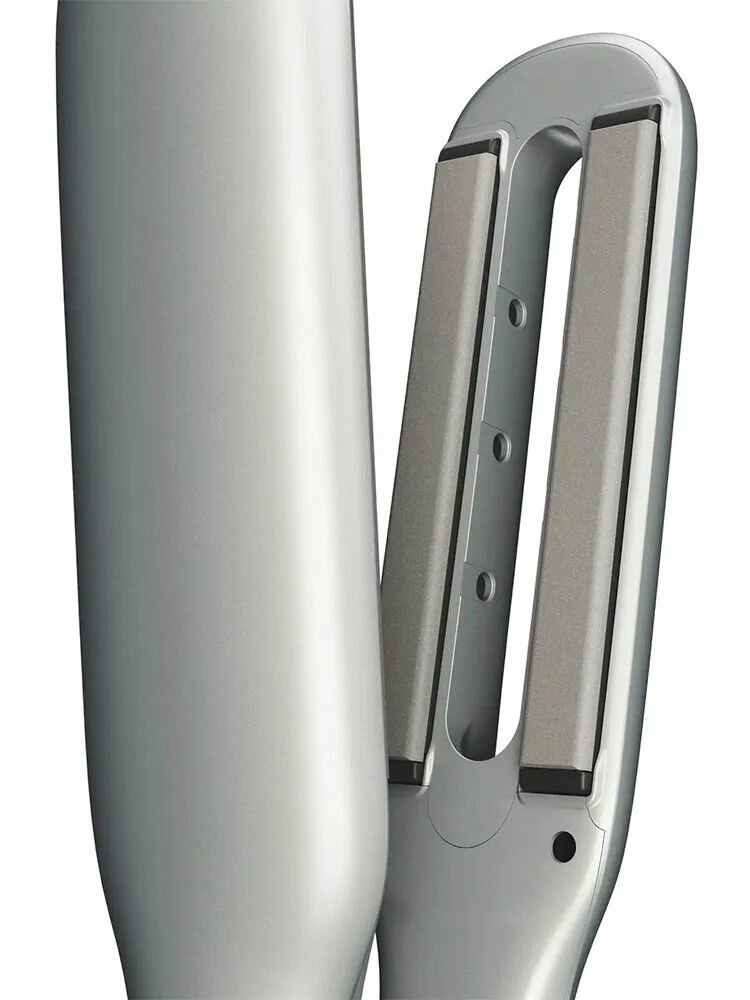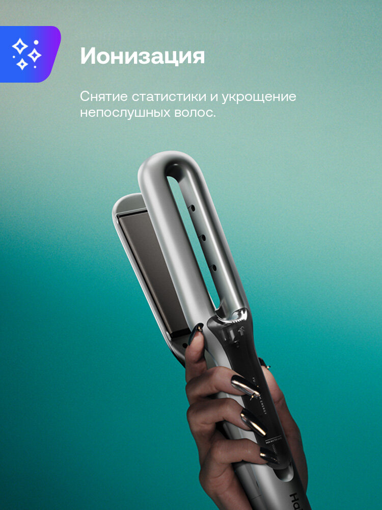 - Керамические пластины шириной 100 мм с алмазным напылением обеспечивают равномерное распределение тепла. Плавающая конструкция адаптируется к разной толщине прядей.